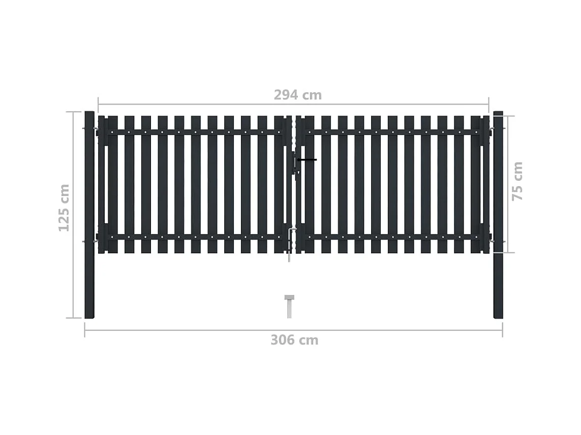 Portail de clôture à double porte Acier 306x125 Anthracite