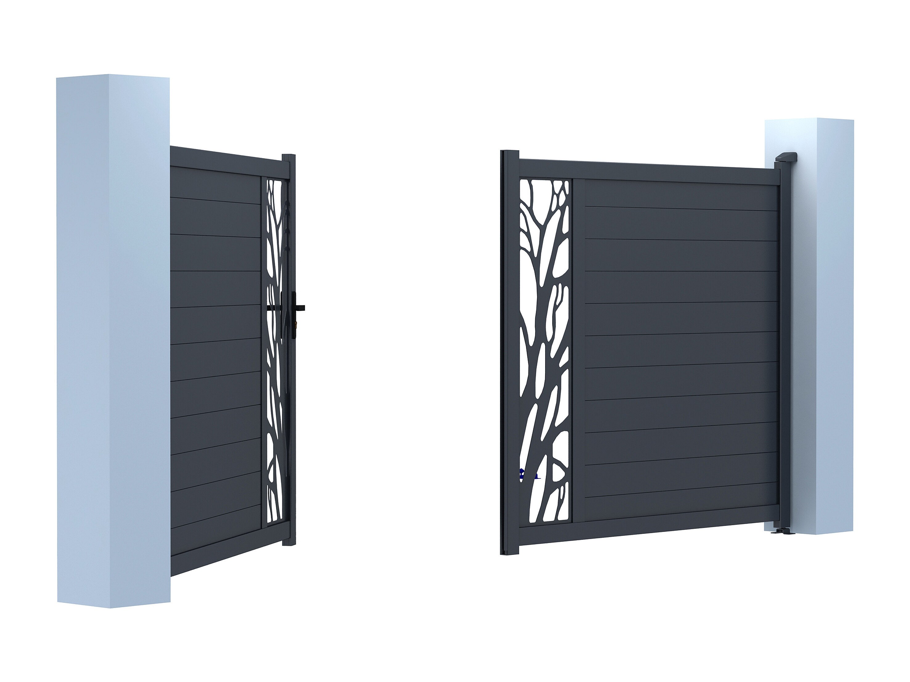Portail électrique battant aluminium semi ajouré à motifs L307 x H187 cm anthracite LABRIT II