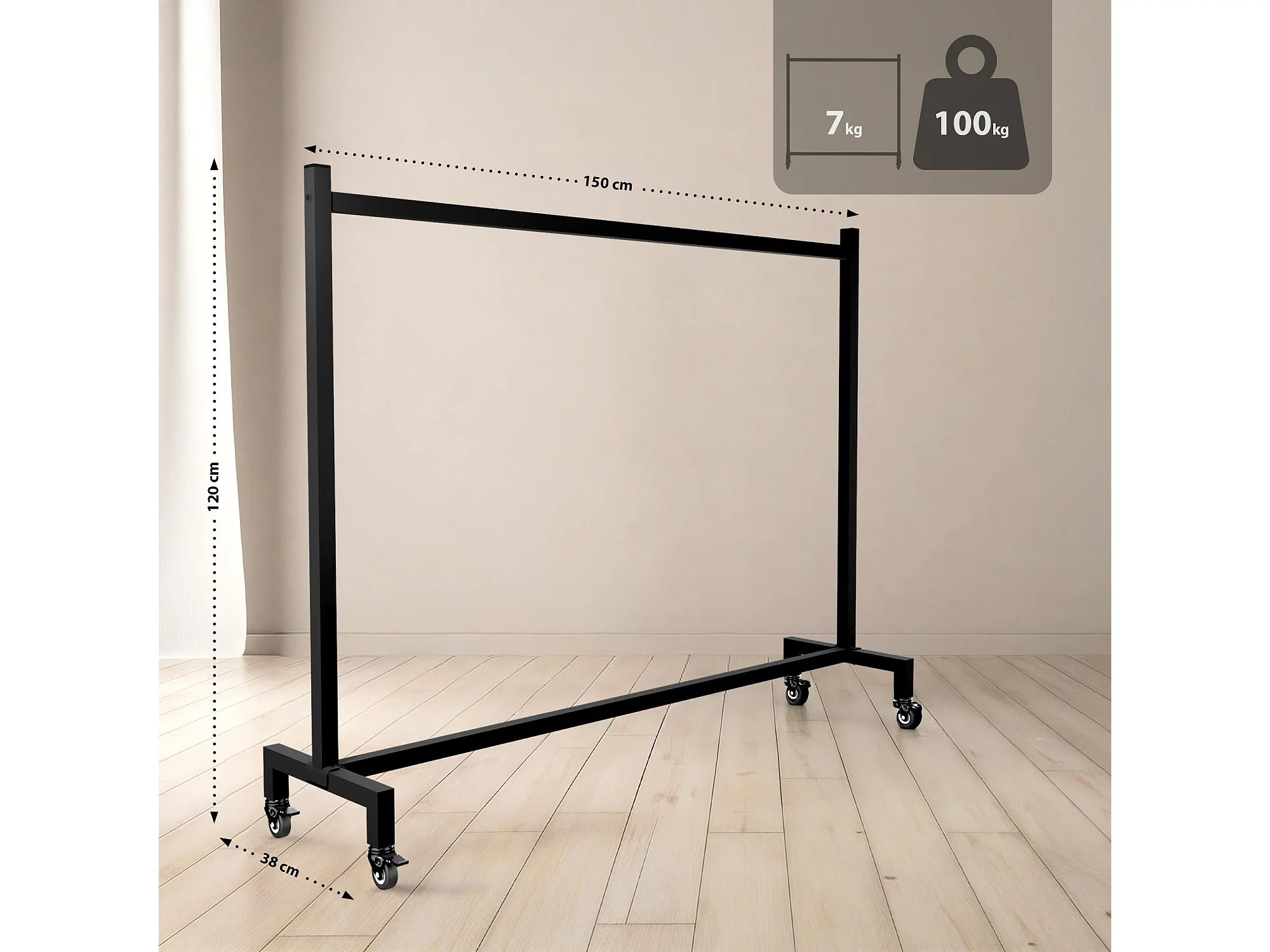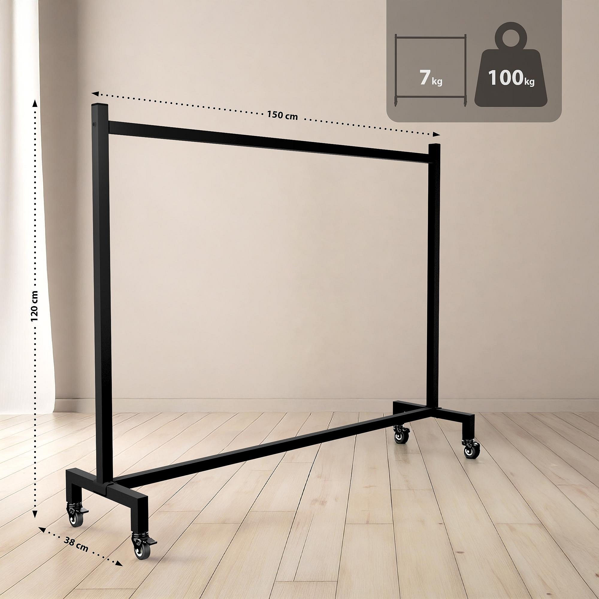 Portant à vêtement - Acier inoxydable - 150x38x120 - Noir - Gisborne