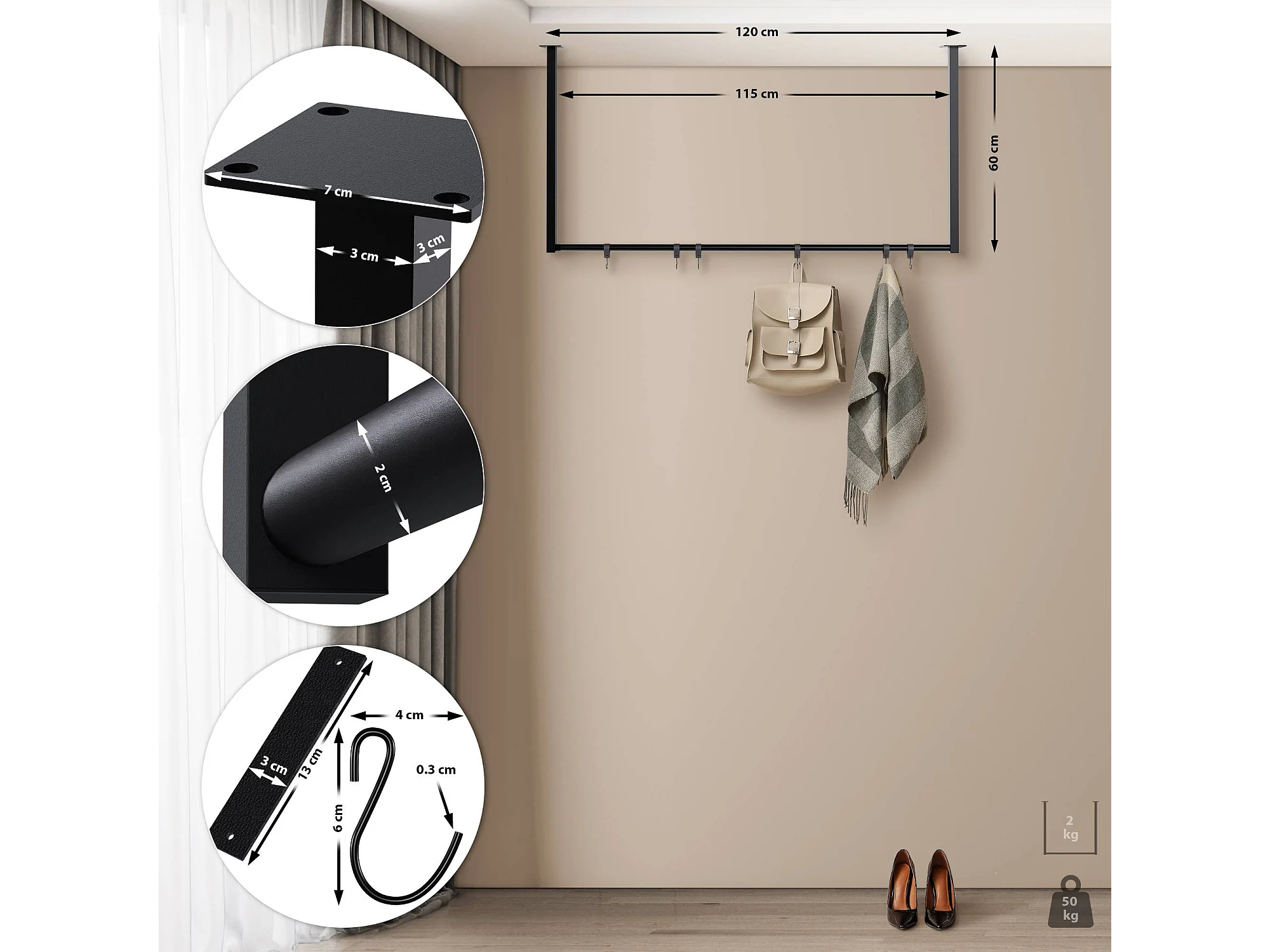 Portant à vêtement - Métal - 120x50x188 cm - Noir - Soran