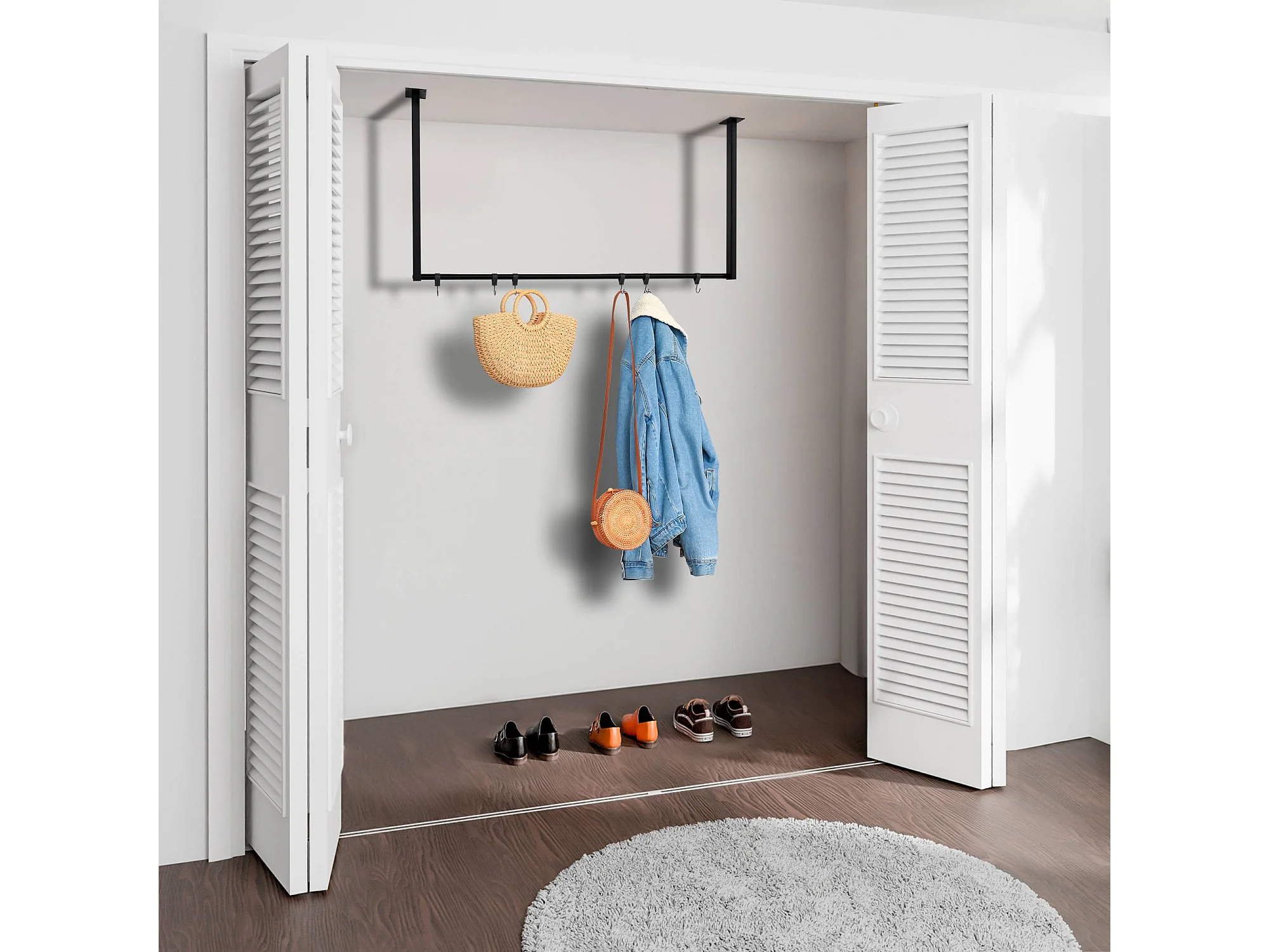 Portant à Vêtement avec Étagère de Chaussures, Penderie Vêtement Hauteur 145CM, Tube en Fer, 4 Pieds Réglables, Portique Vêtement pour Chambre, Salon, Noir