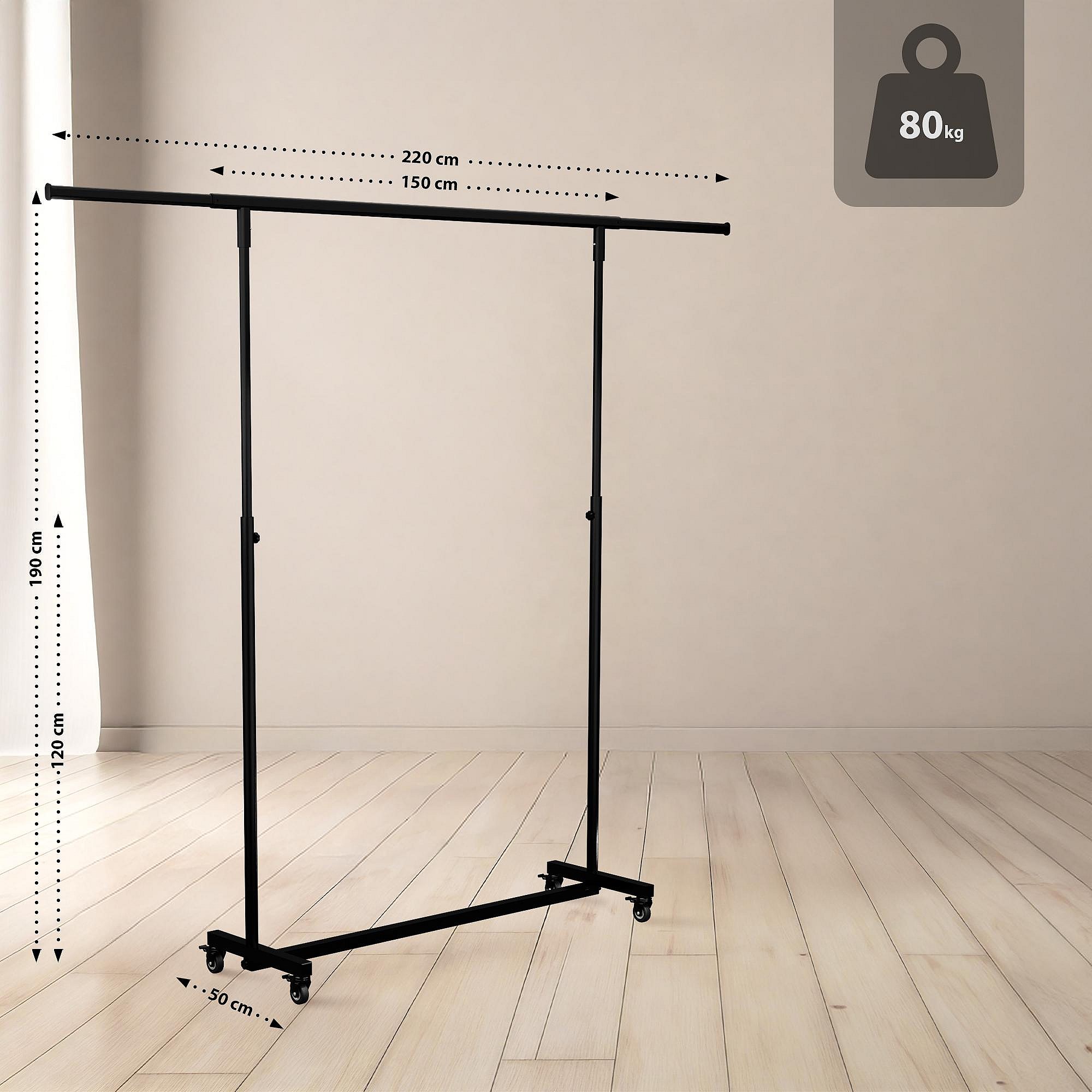 Portant à vêtement - Métal - 150x50x188 cm - Noir - Soran