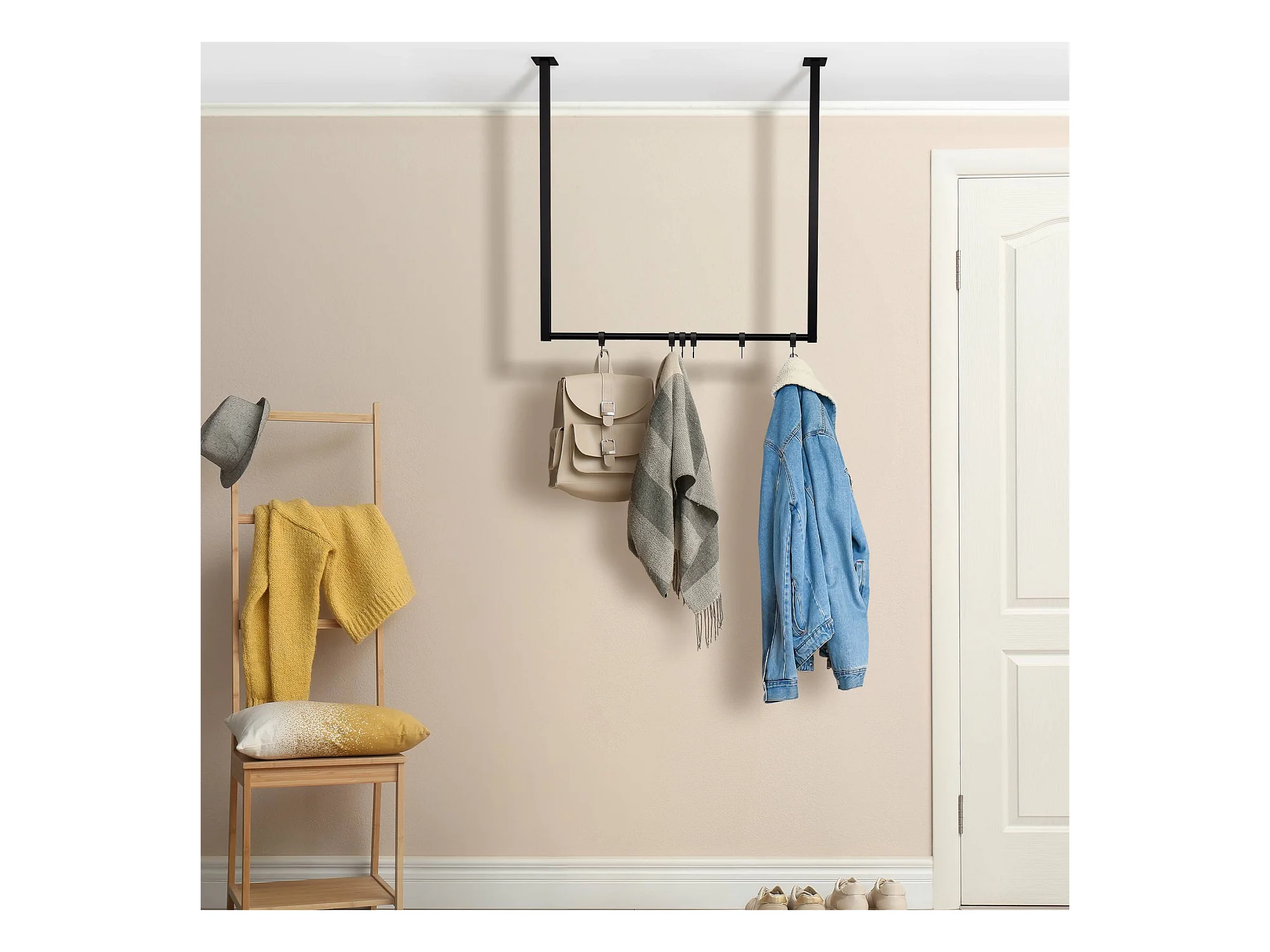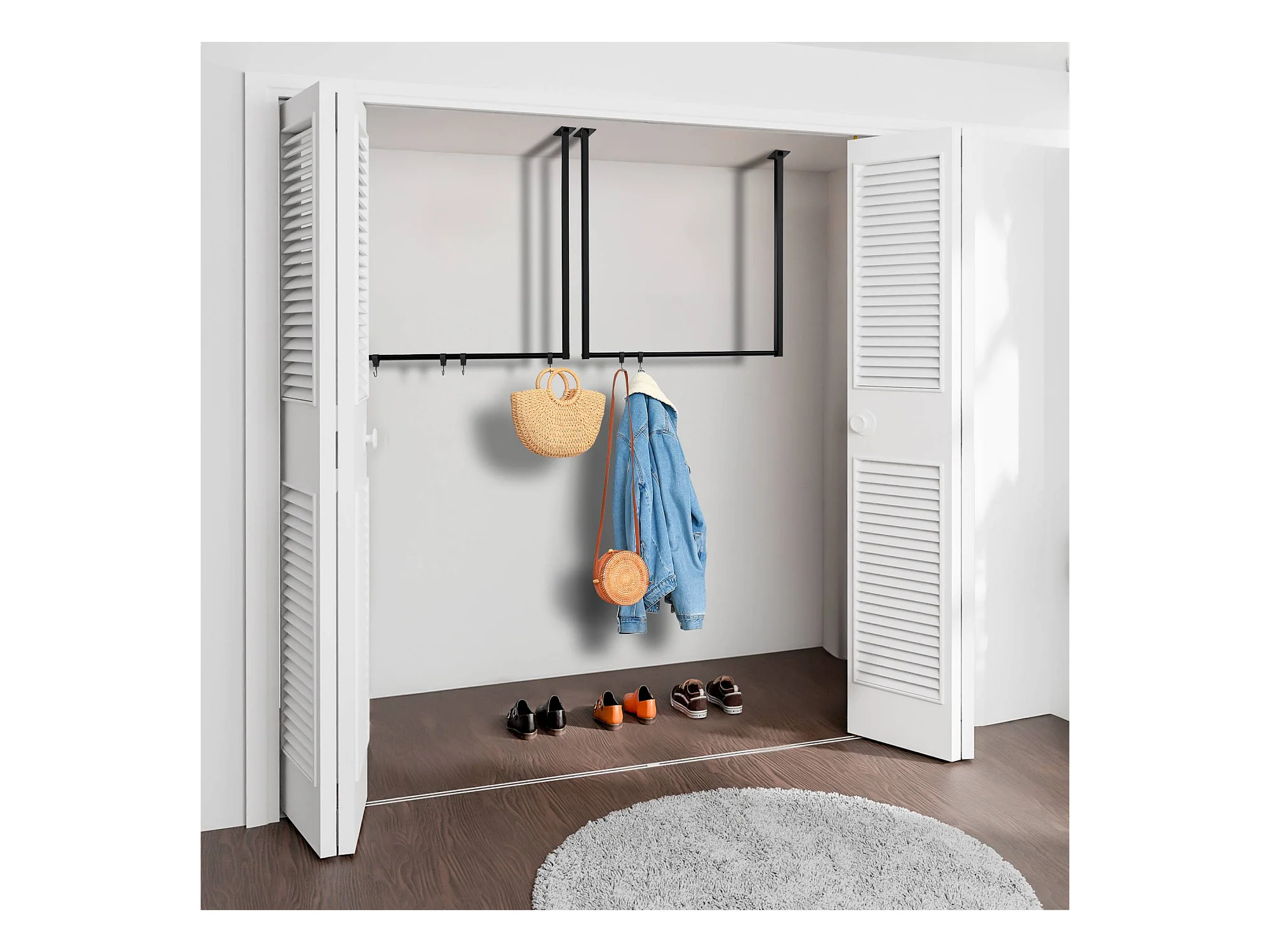 Portant Double Effet Bois Roulette Noir