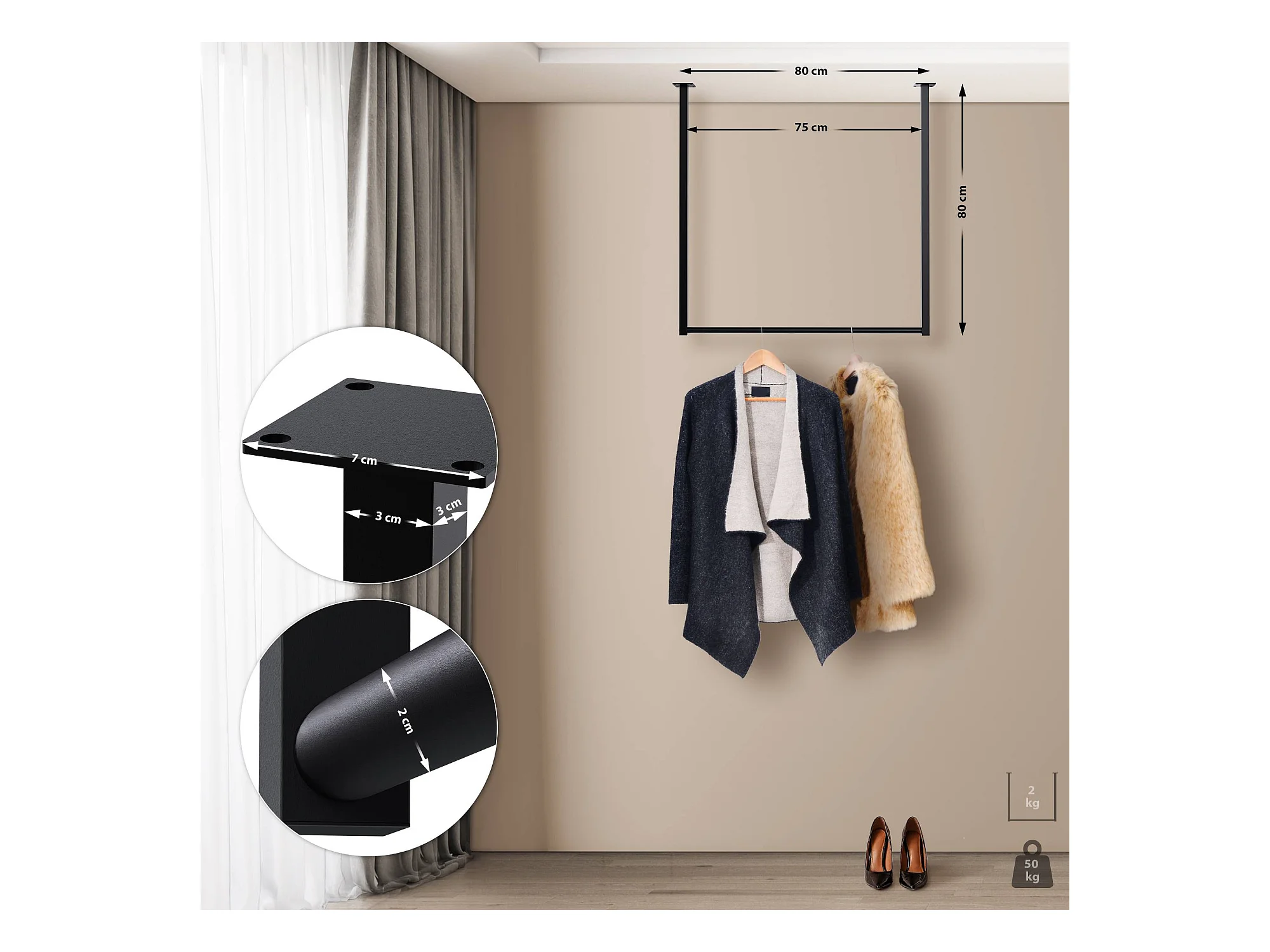 Portant à vêtement - Métal - 80x80 cm - Noir - Fenton