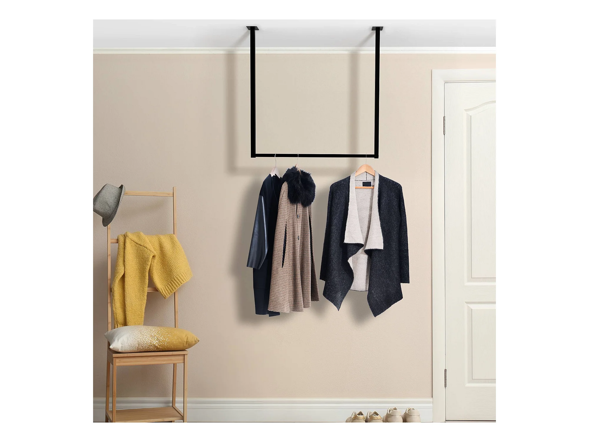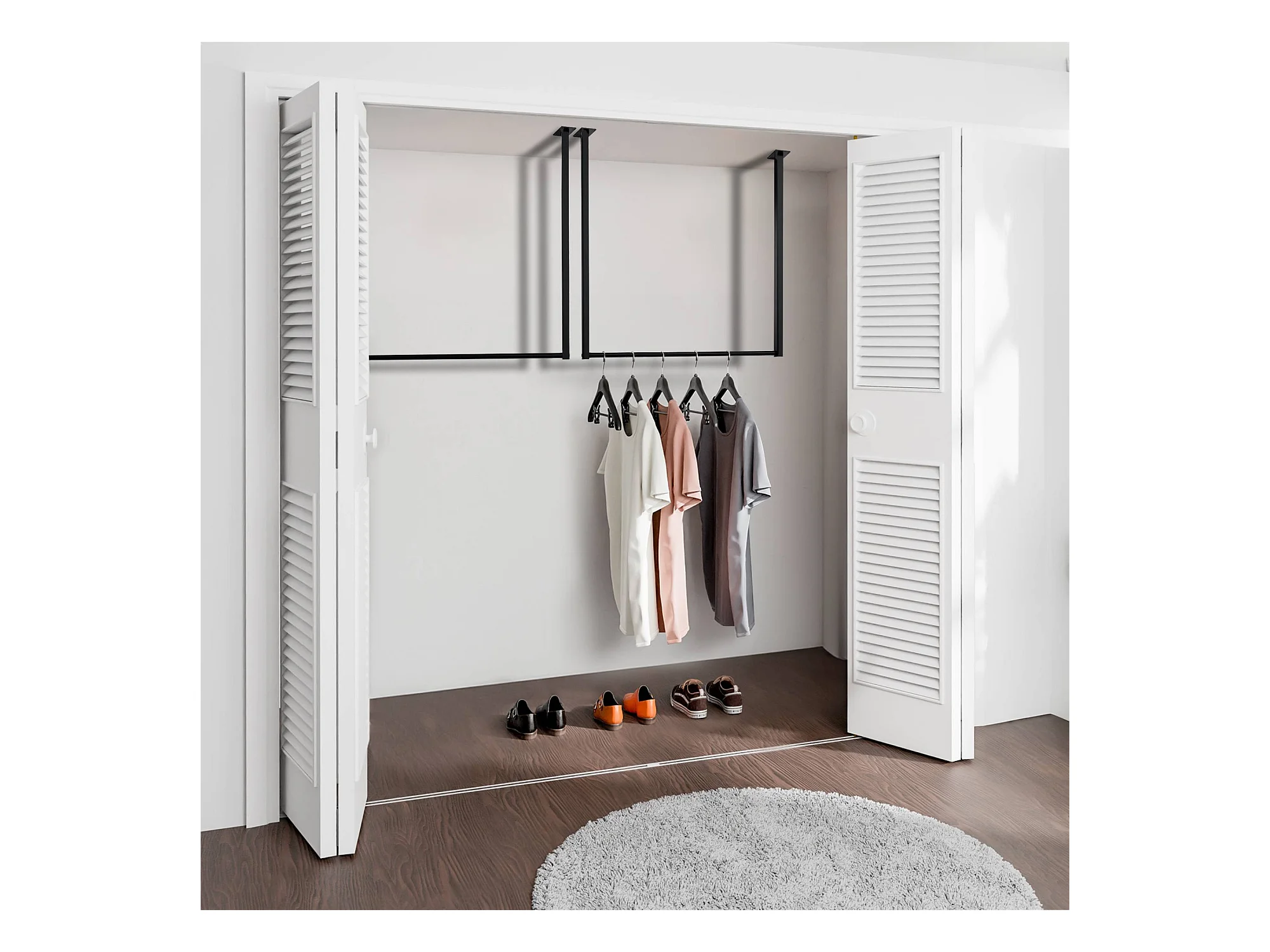 Portant Double Effet Bois Roulette Noir