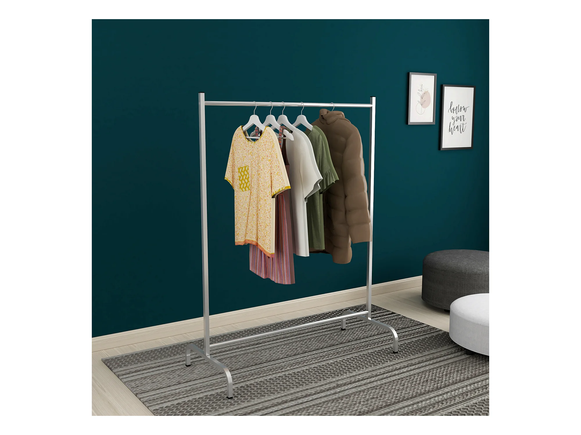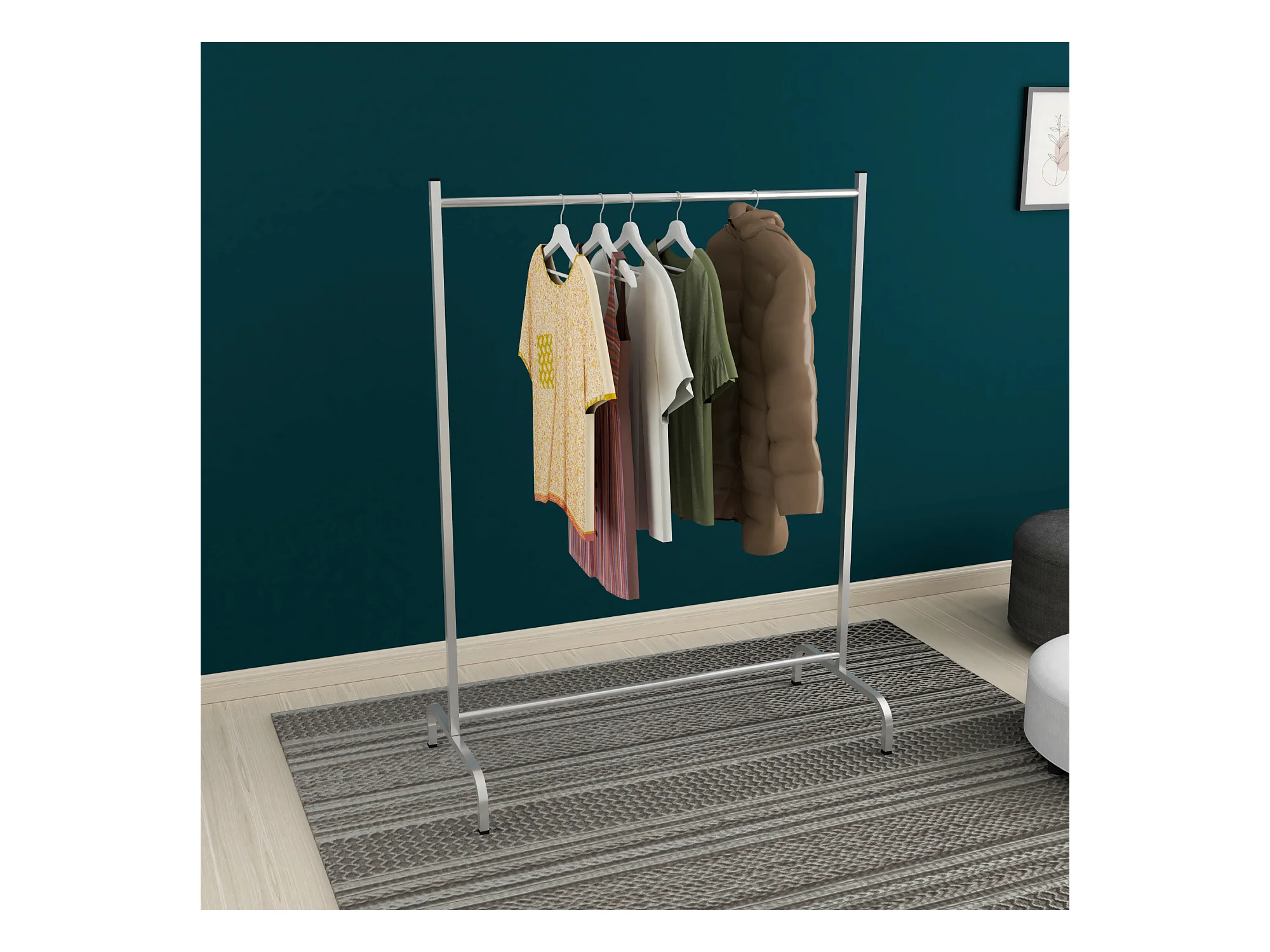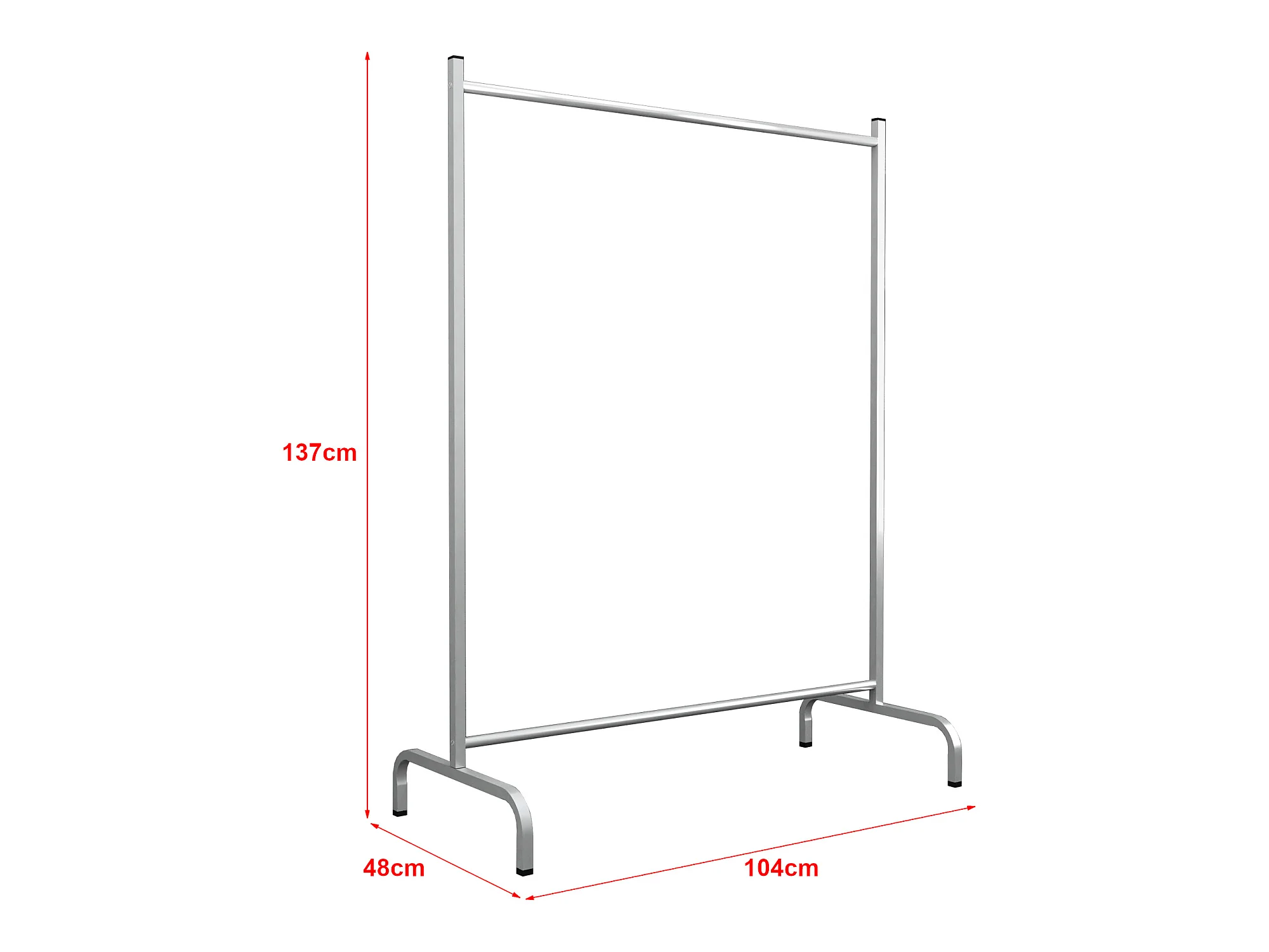 Portant à vêtements TIGER penderie simple sur roulettes vestiaire mobile 1 barre de hauteur réglable, en métal chromé et aluminium