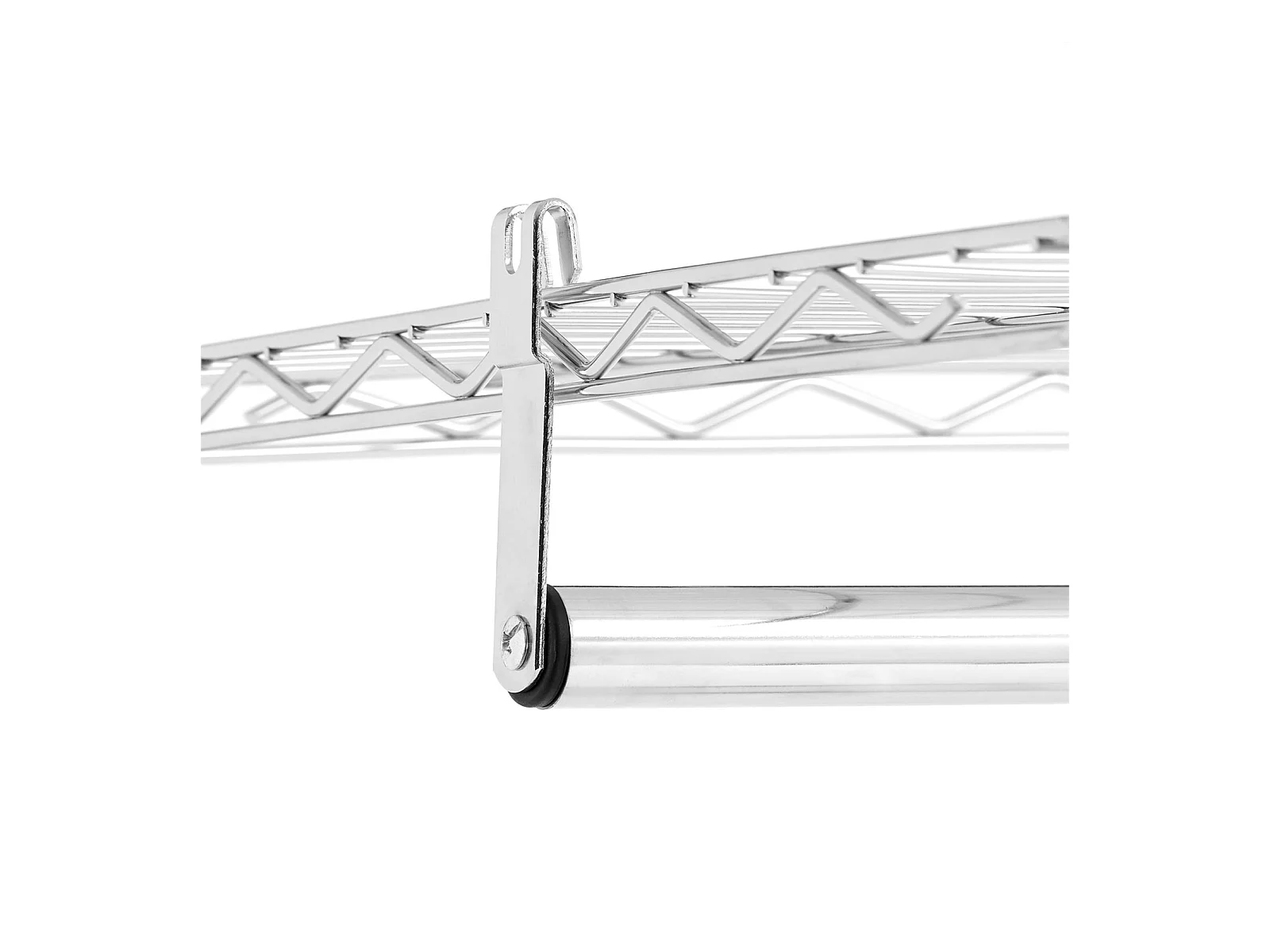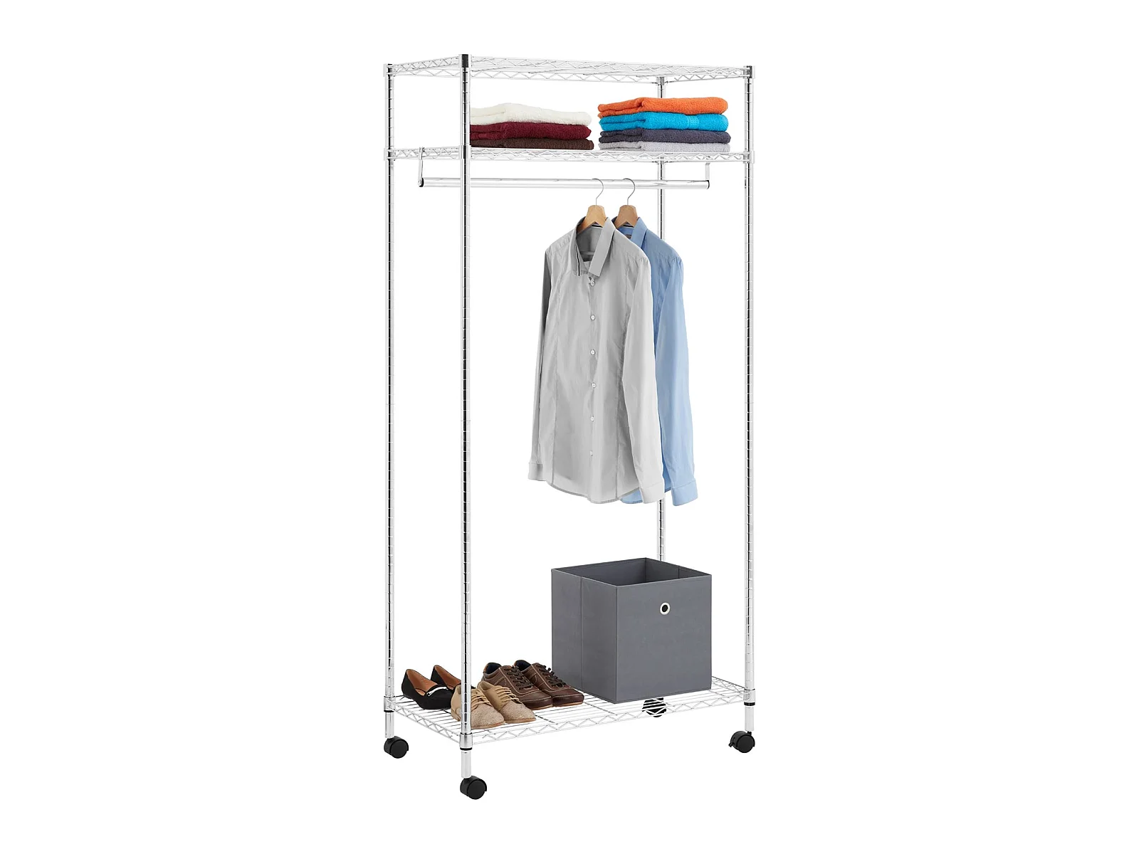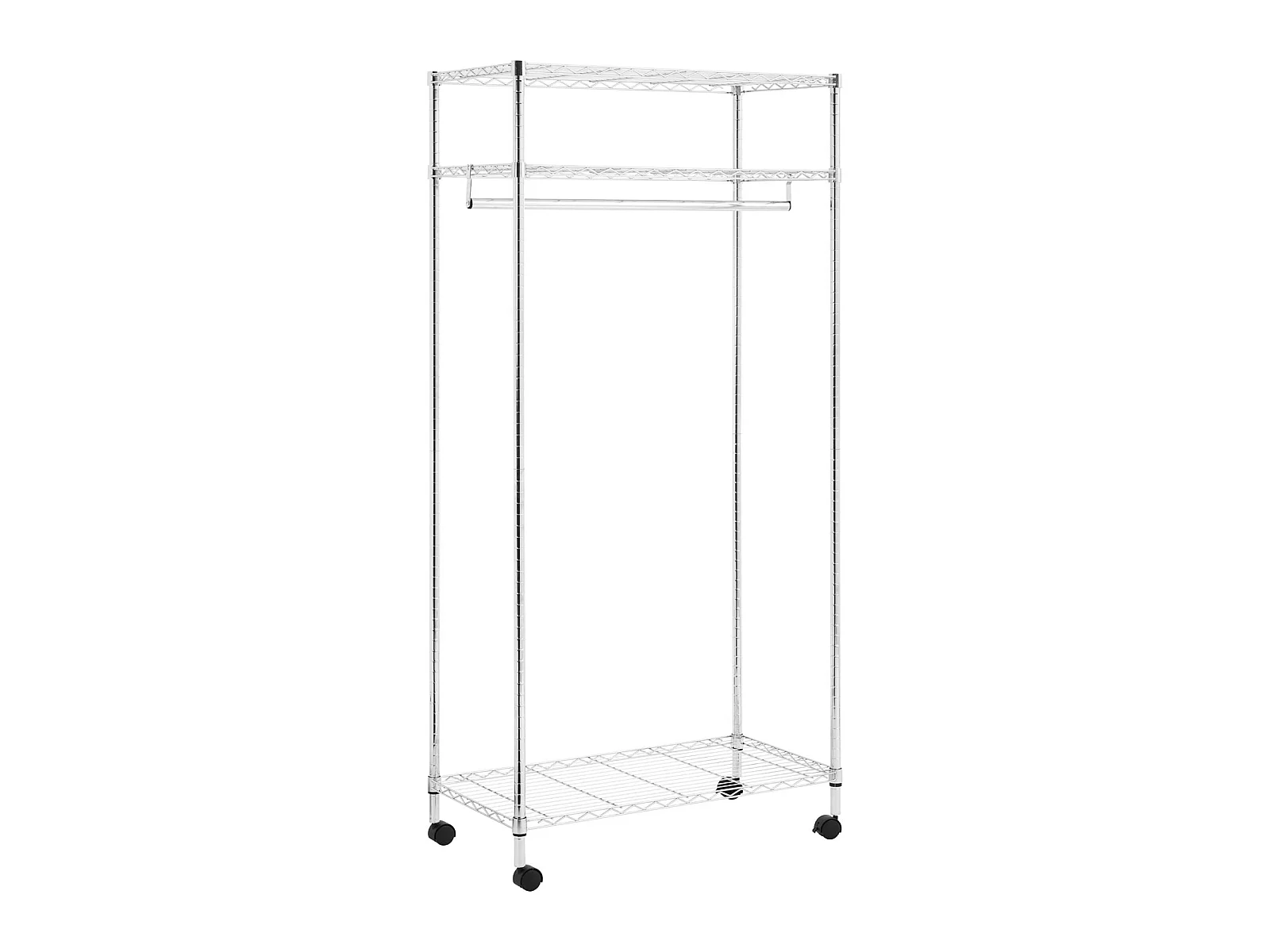 Portant à vêtements BRINDISI penderie simple sur roulettes vestiaire mobile avec 1 barre et 3 tablettes, en métal chromé