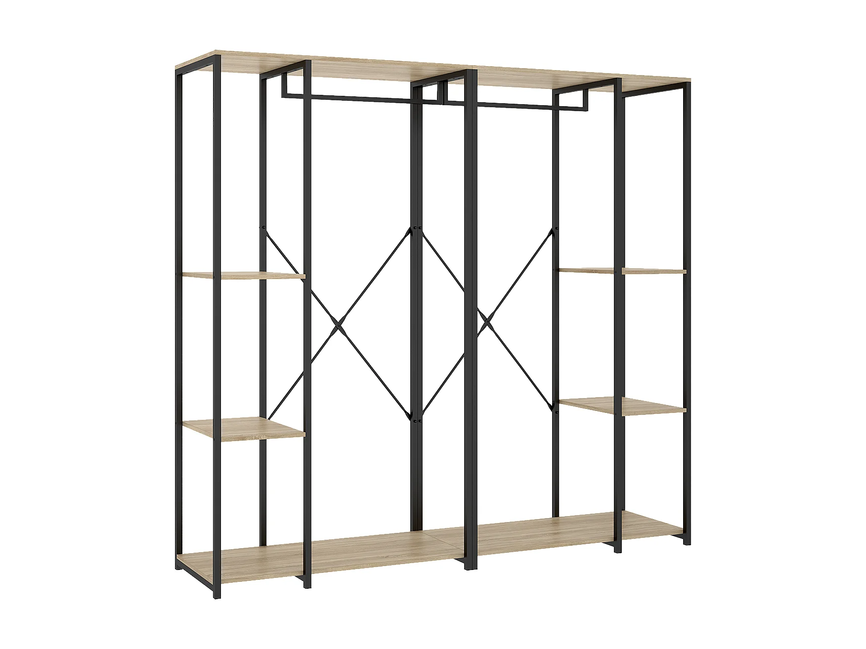 Portant à vêtements double penderie de structure métallique avec 5 étagères de rangement, coloris naturel/noir - Hauteur 167 x Longueur 180 x Profondeur 40,4 cm