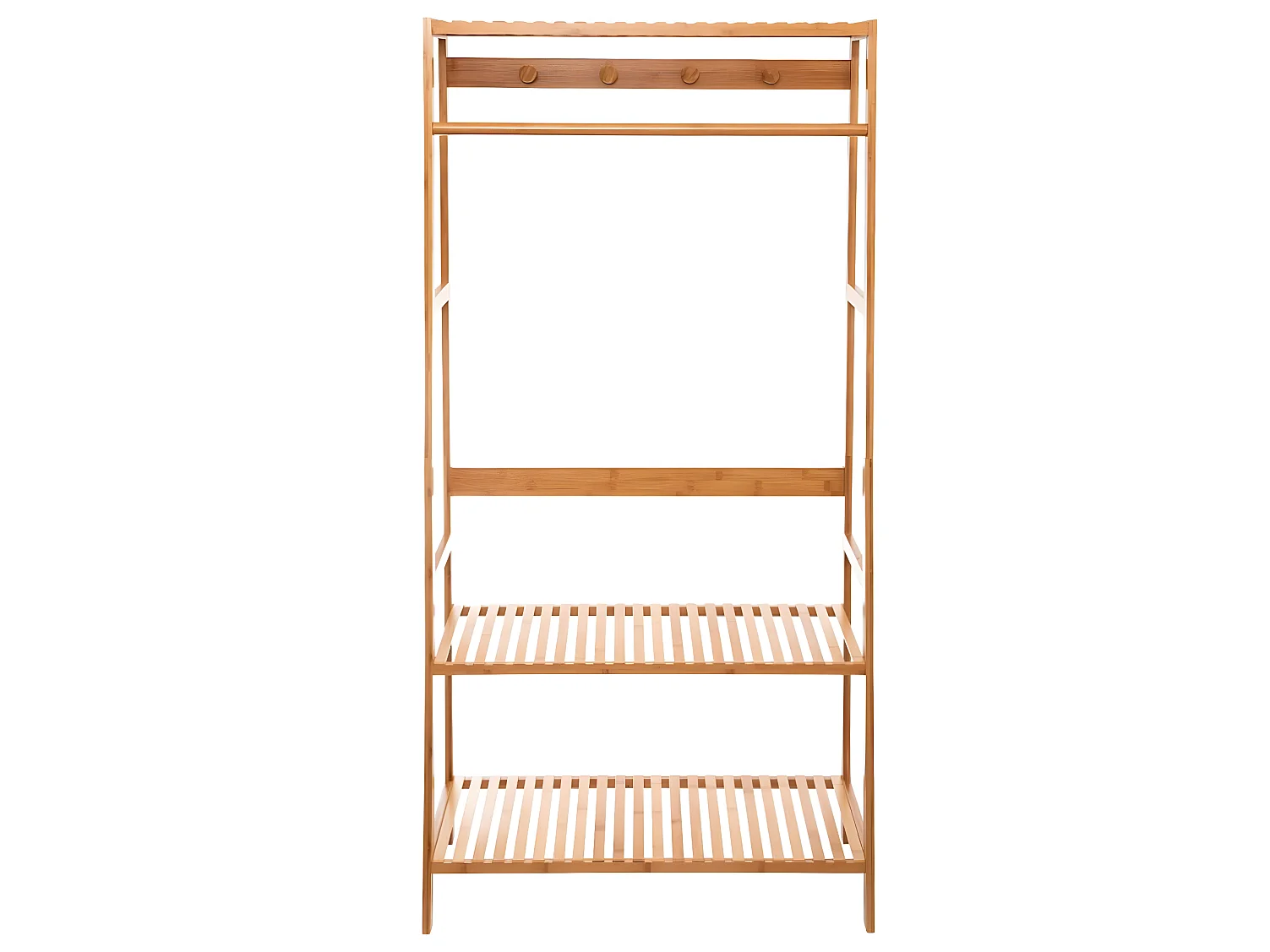 Penderie porte-manteaux - 3 barres de penderie, 2 patères - dim. 36L x 24l x 168H cm - bois bambou