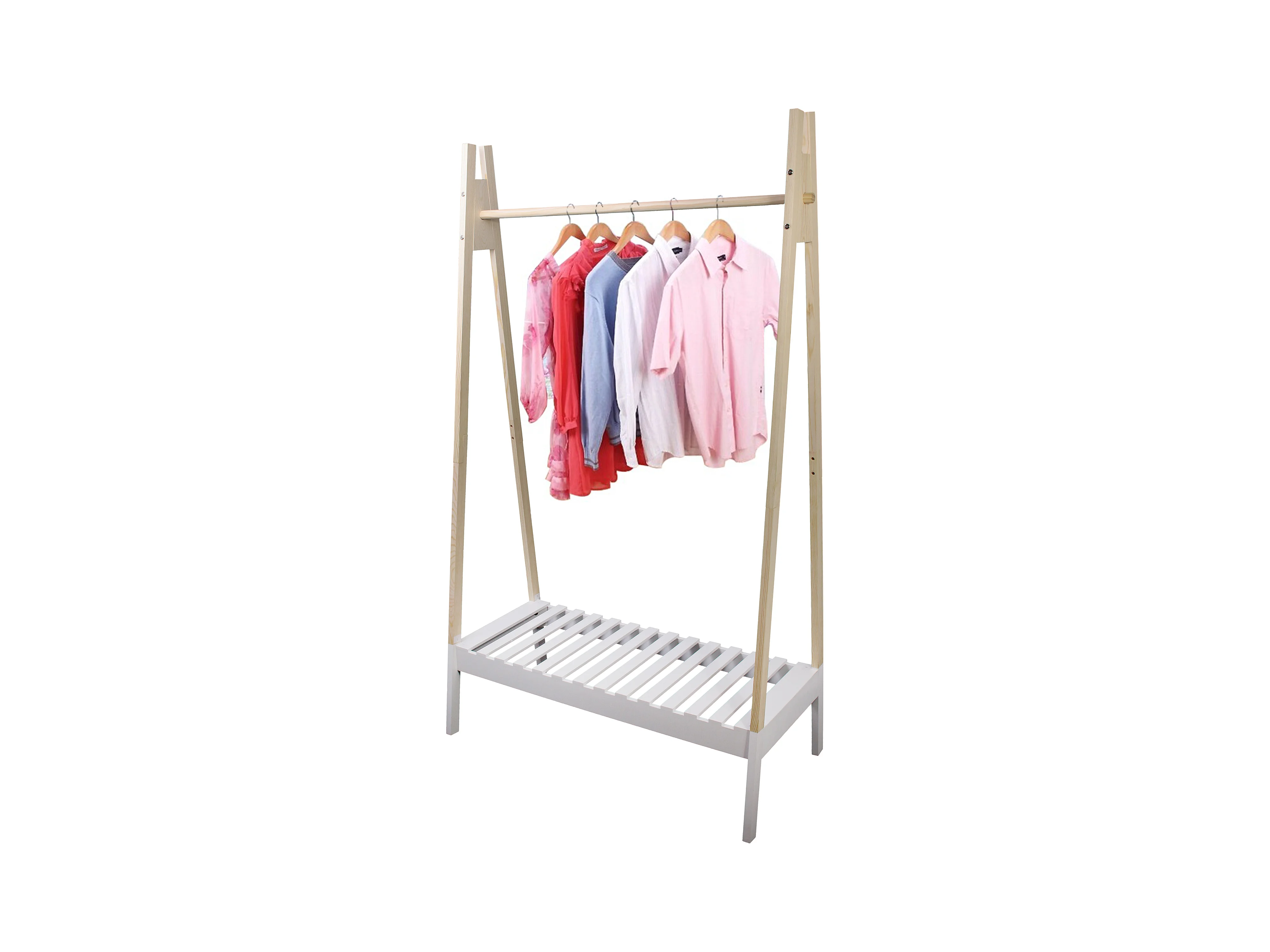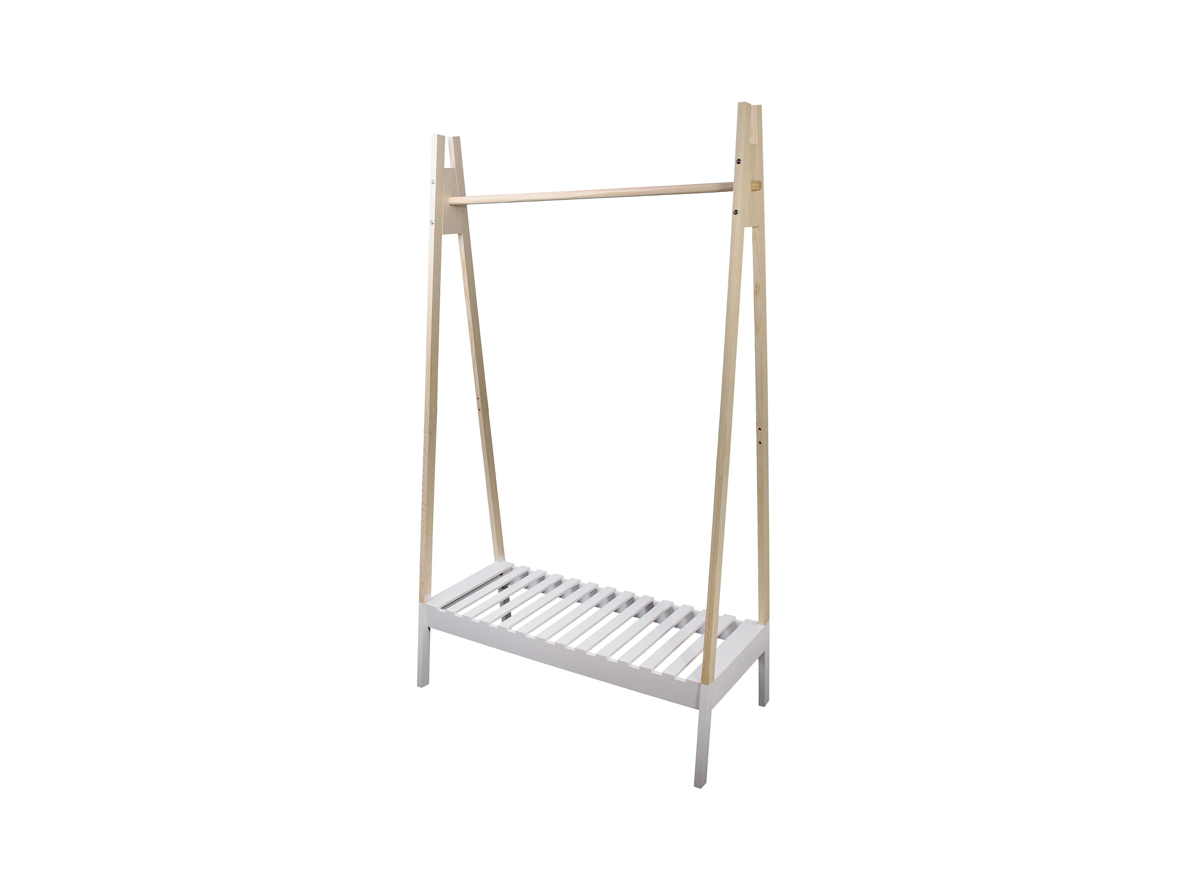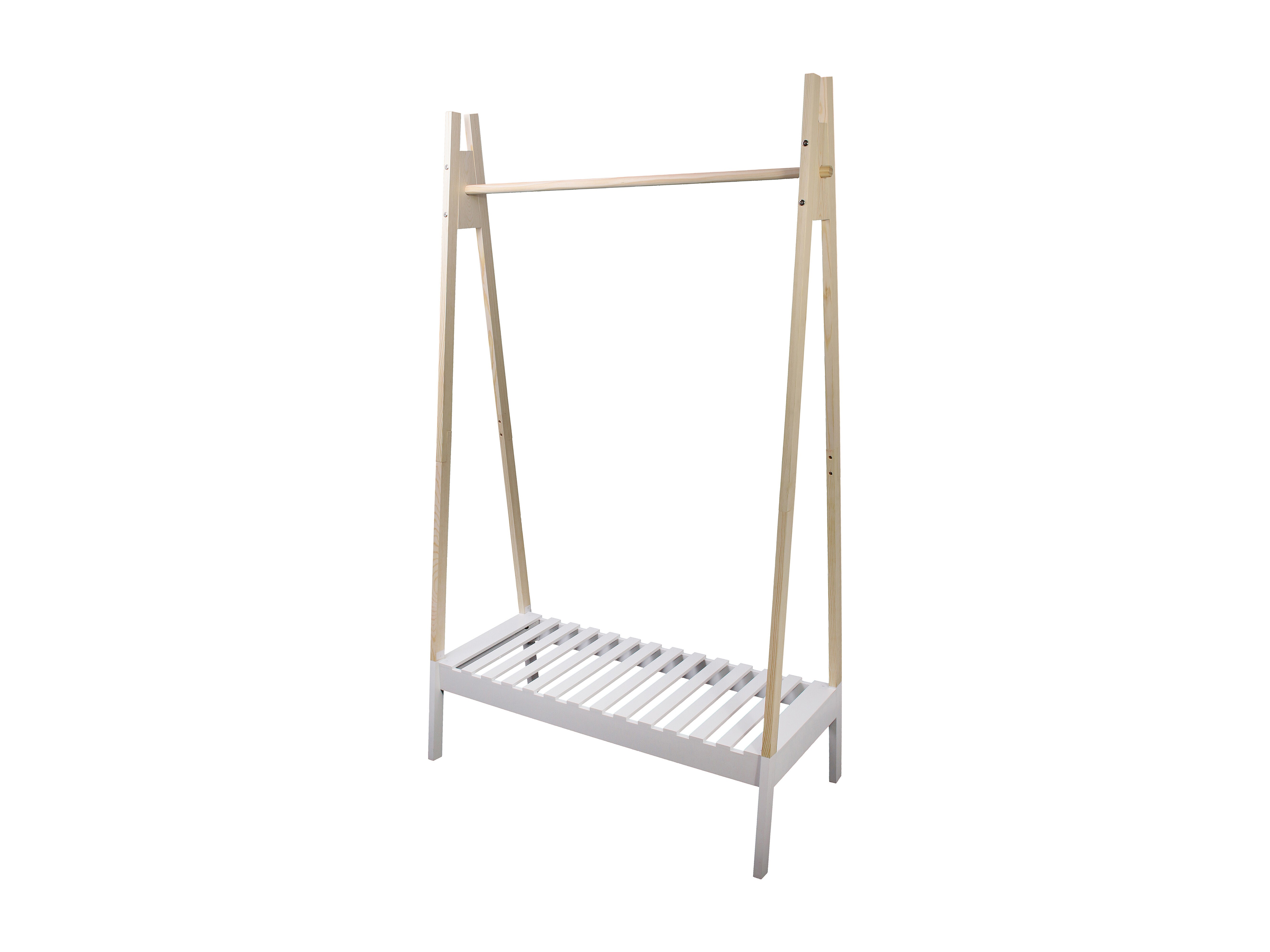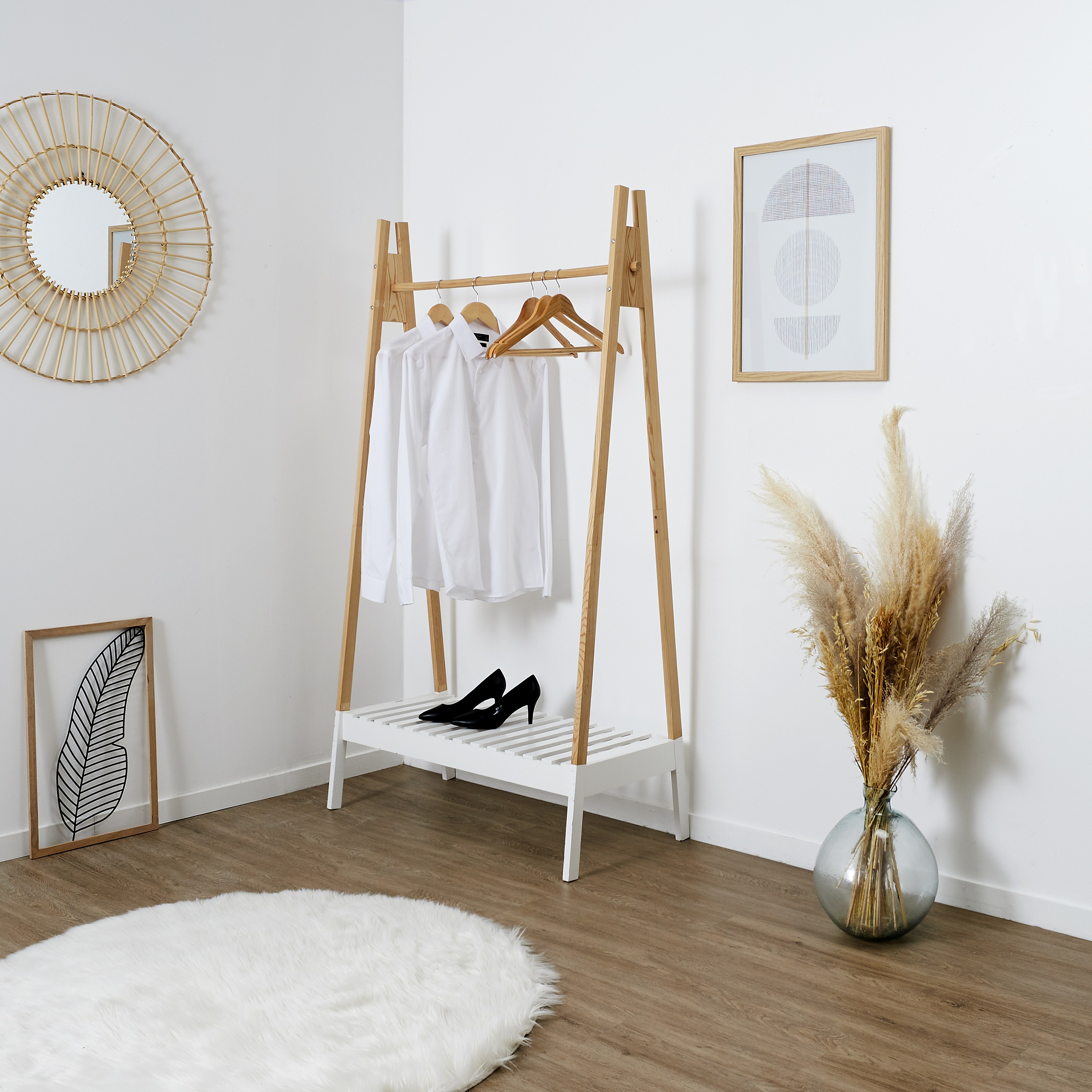 Portant A Vetements Bois Blanc 100x46x170cm Beige, Blanc