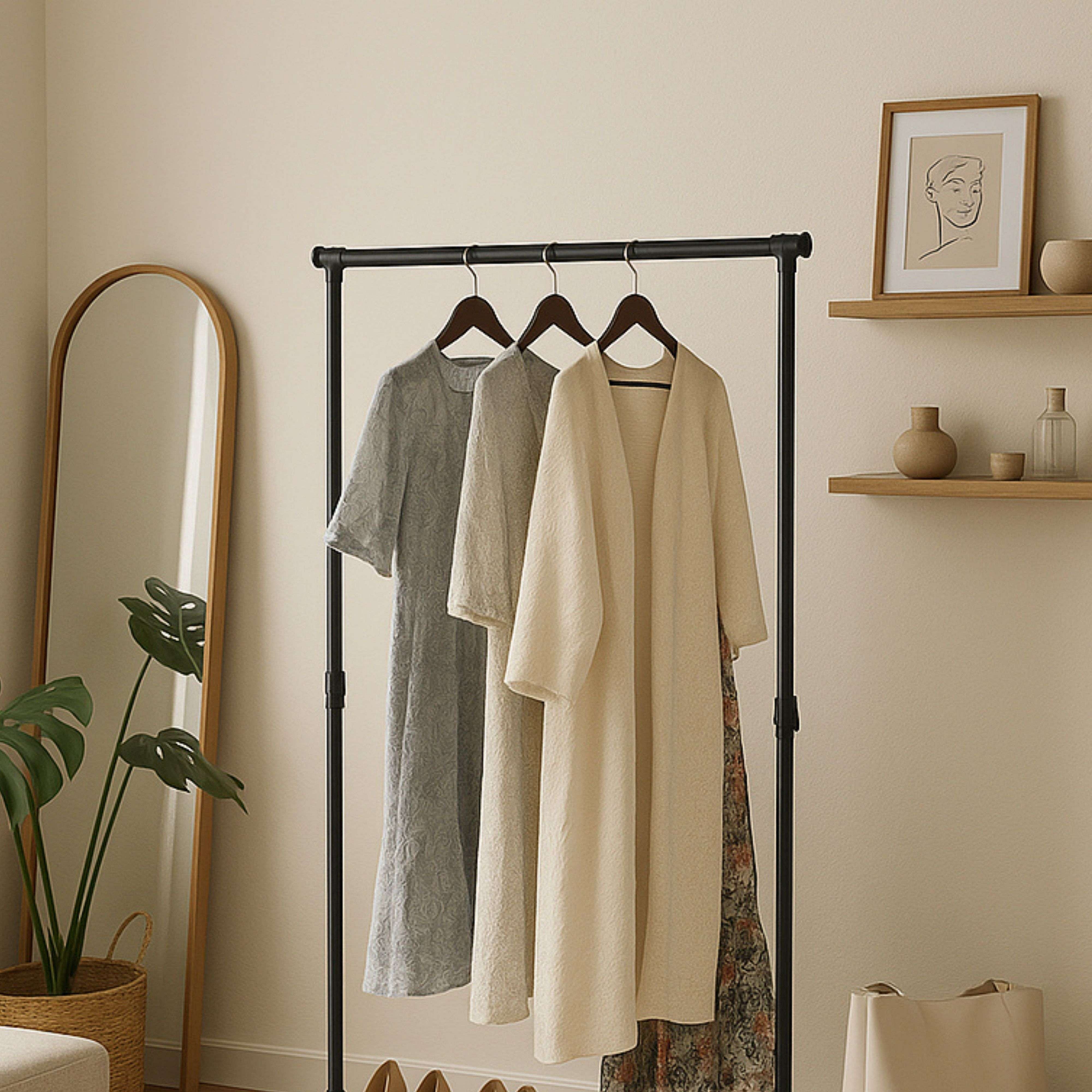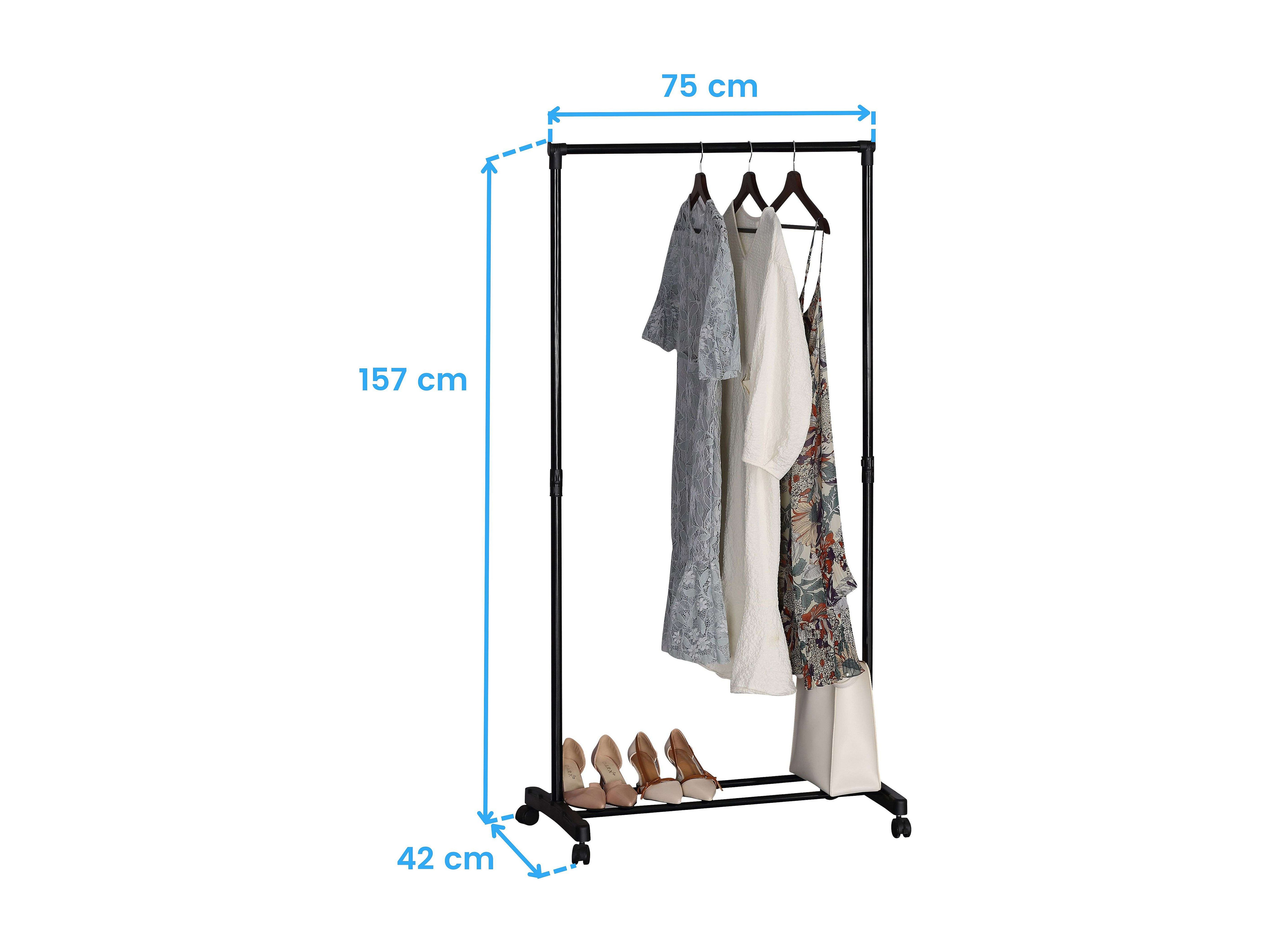 Portant à vêtements en métal avec roulettes et 2 barres, noir, 75x157x42 cm