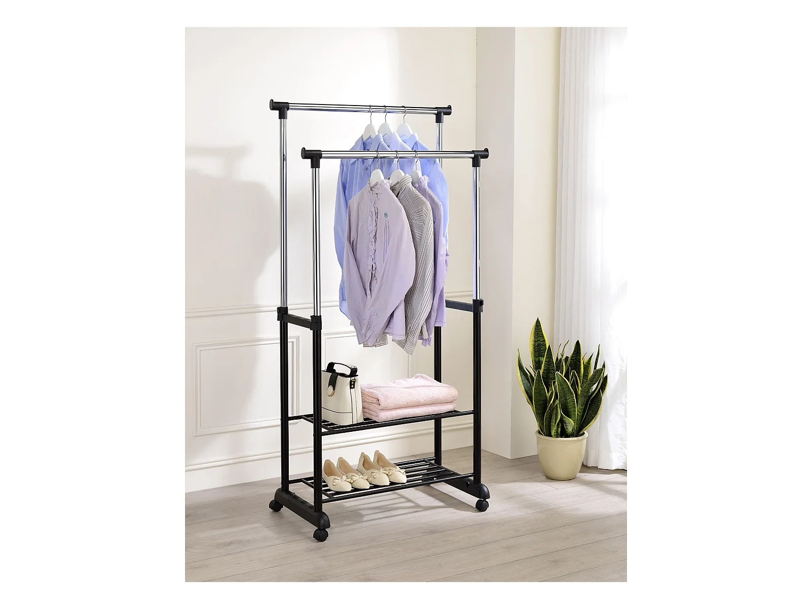 VICKY - Portant Double Réglable à Roulettes Noir et Chrome