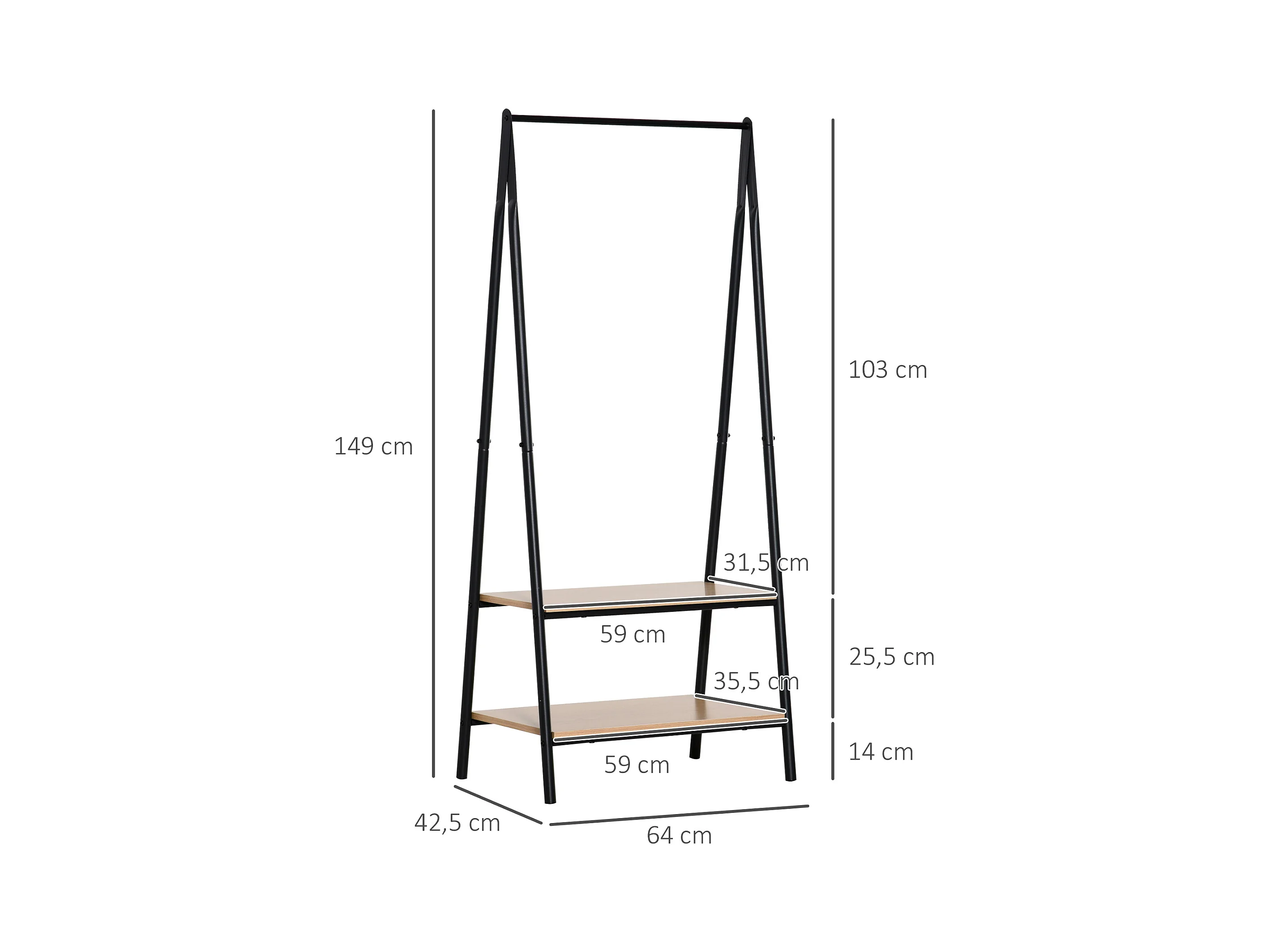 Portant à vêtements penderie style contemporain triangulaire dim. 64L x 43l x 149H cm 2 étagères MDF bois clair acier noir