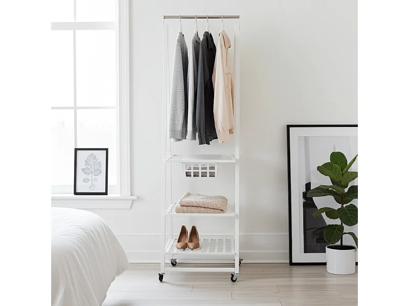 Portant à vêtements sur roulettes en métal, blanc, URBAN