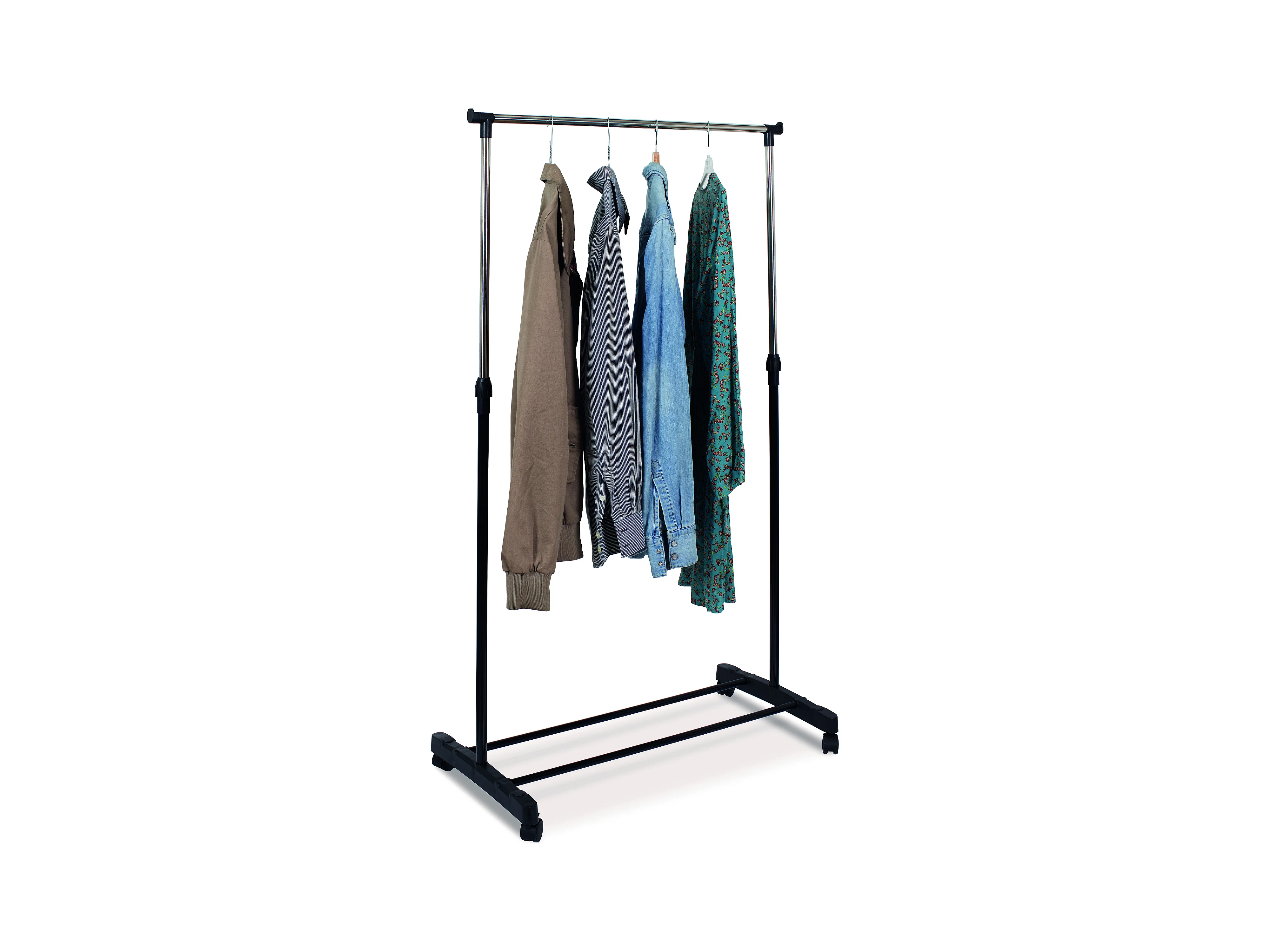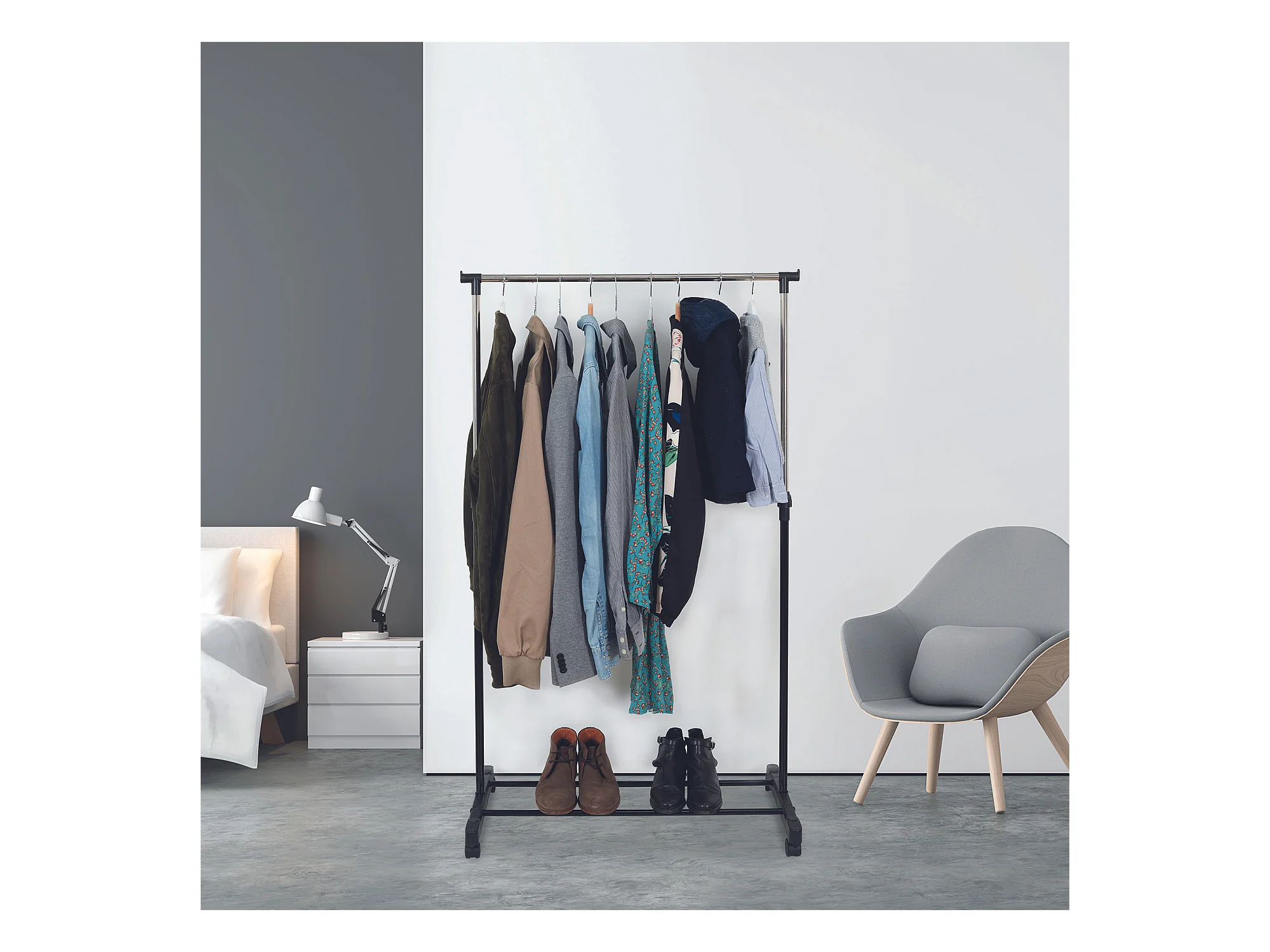 Portant à vêtements Inoxydable Extensible avec Roulettes et Étagère à Chaussures coloris noir - Longueur 80 x profondeur 43 x Hauteur 90-160 cm
