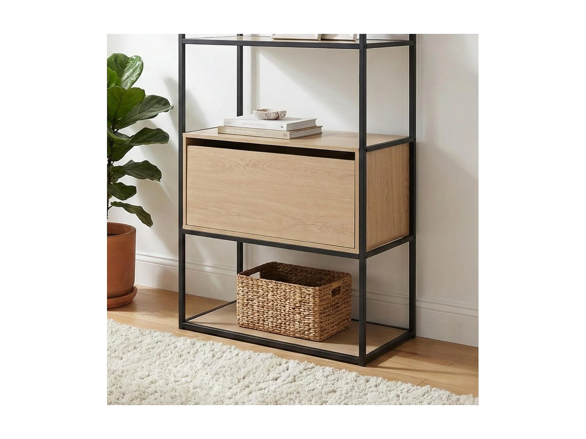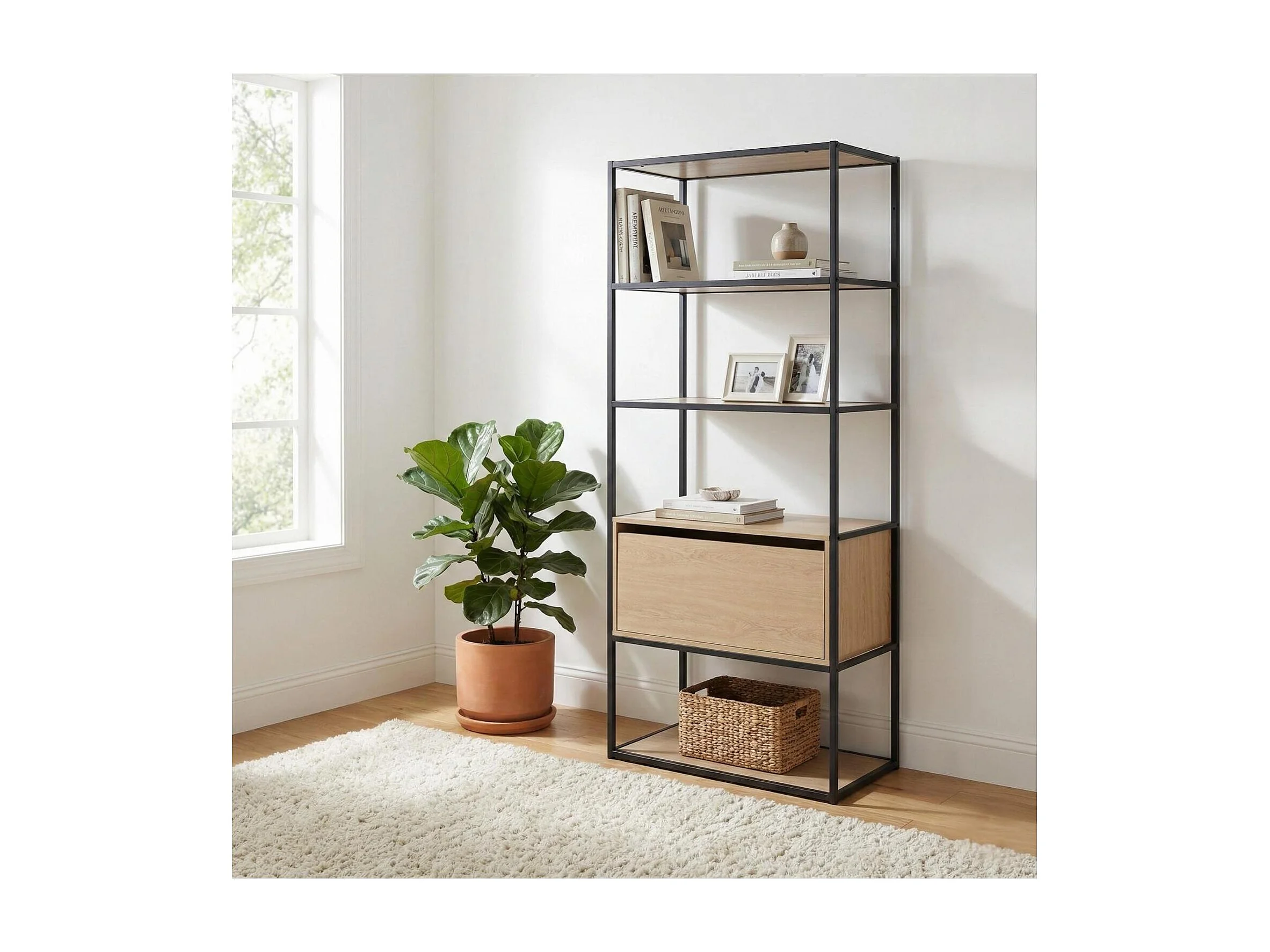 Portant vêtements en bois et métal gris 80x184,5cm - avec tiroir