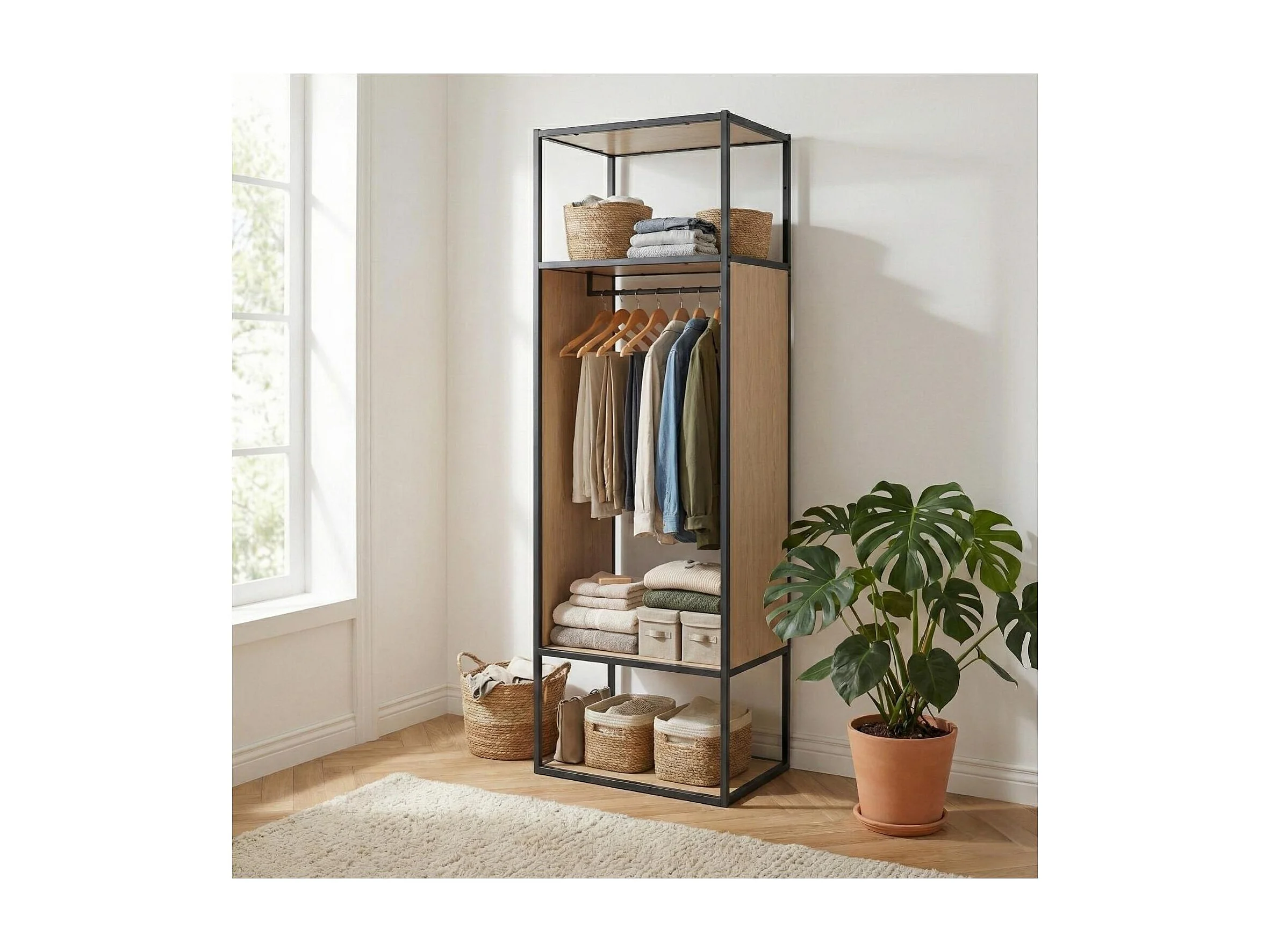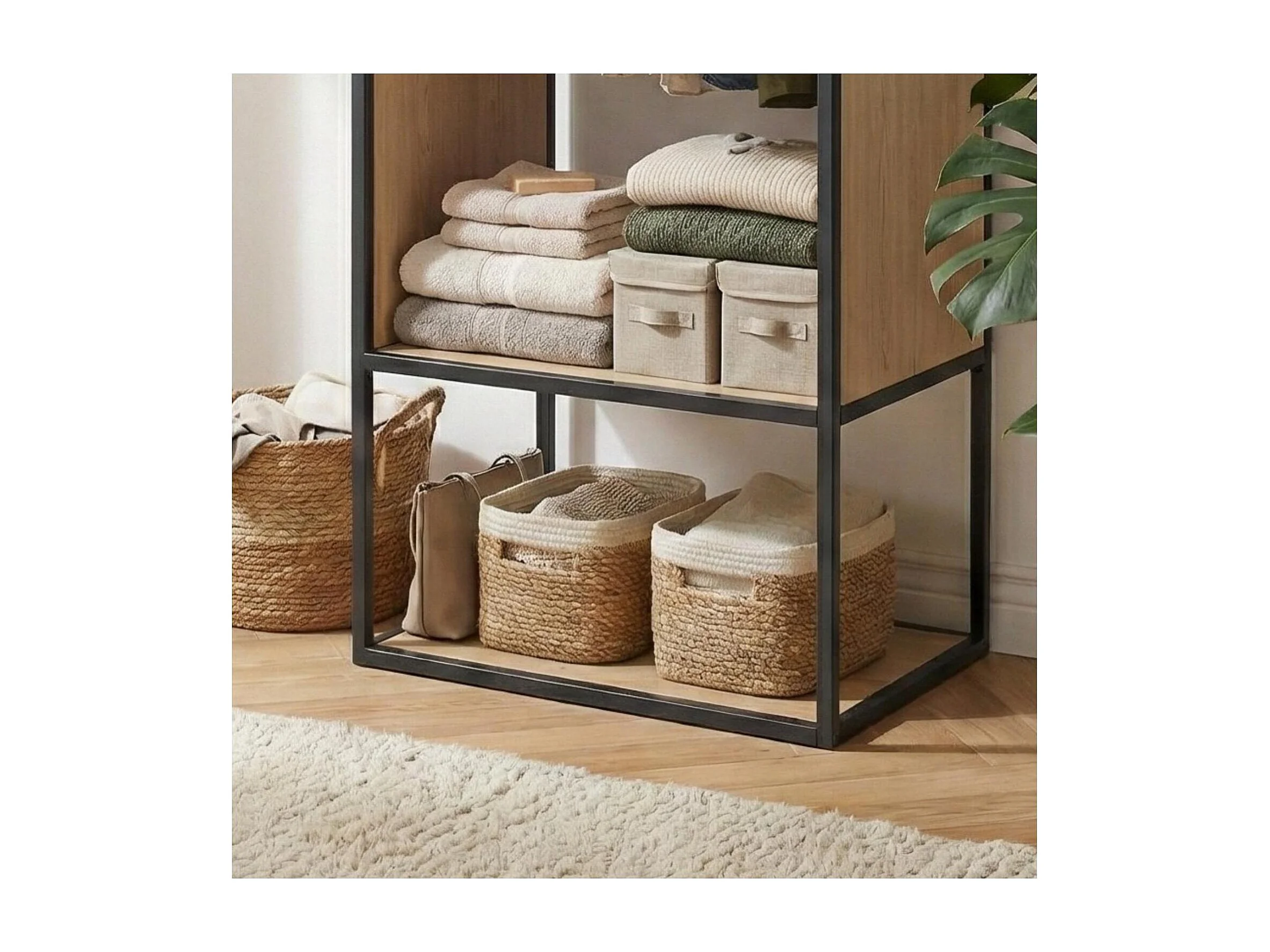 Portant vêtements en bois et métal gris 80x184,5cm - avec tiroir