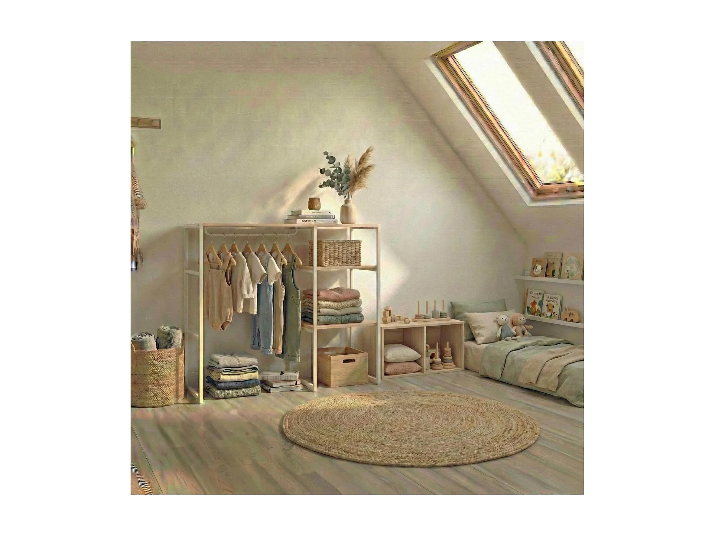 Portant vêtements KADRA sous combles étagères 100x85cm
