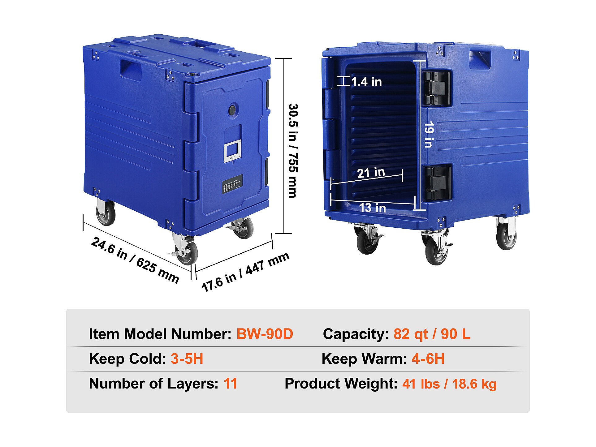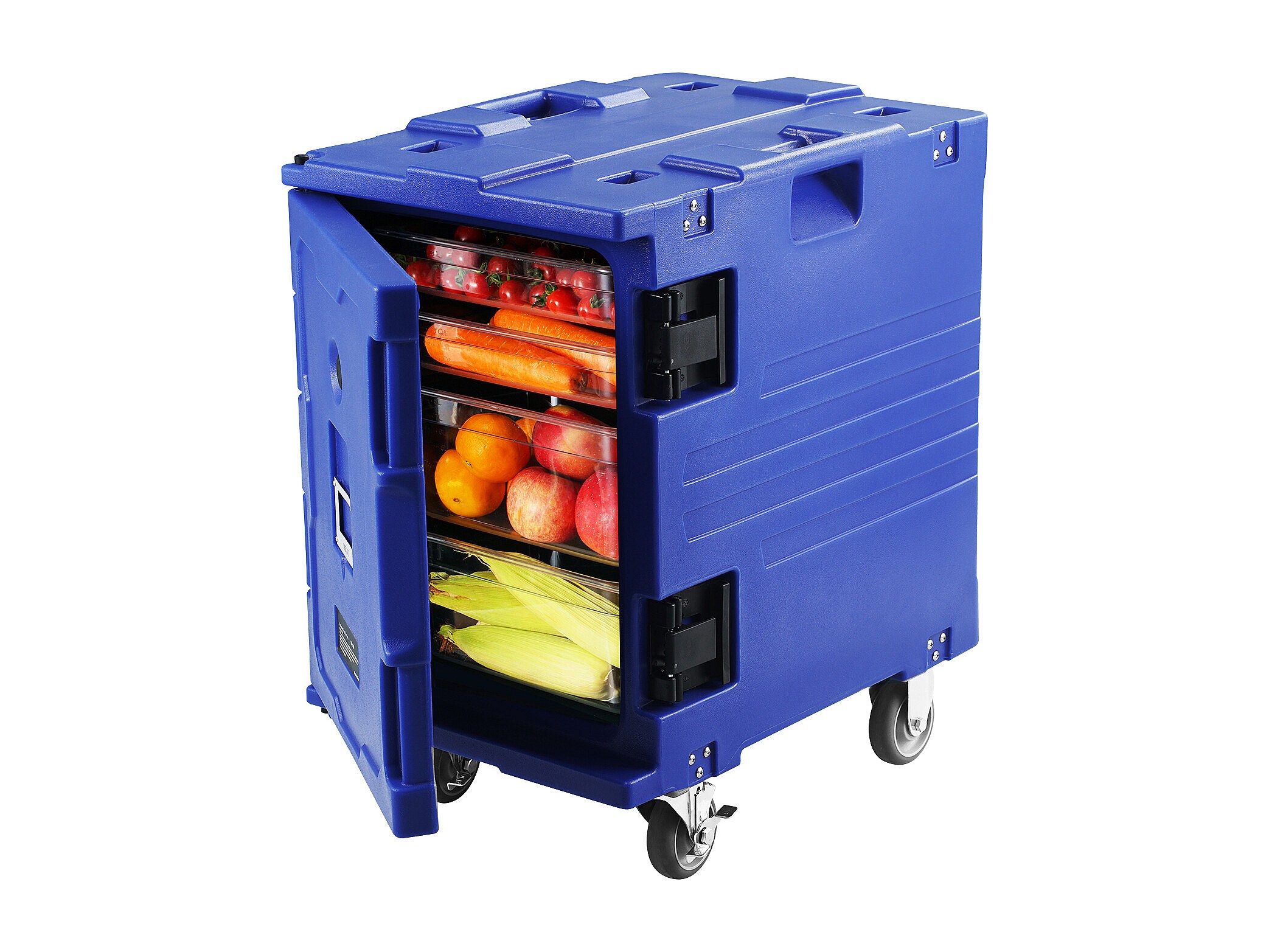 Porte-bac Isotherme pour Aliments SucceBuy, 90 Litres, Chargement Frontal avec Roulettes Bleu