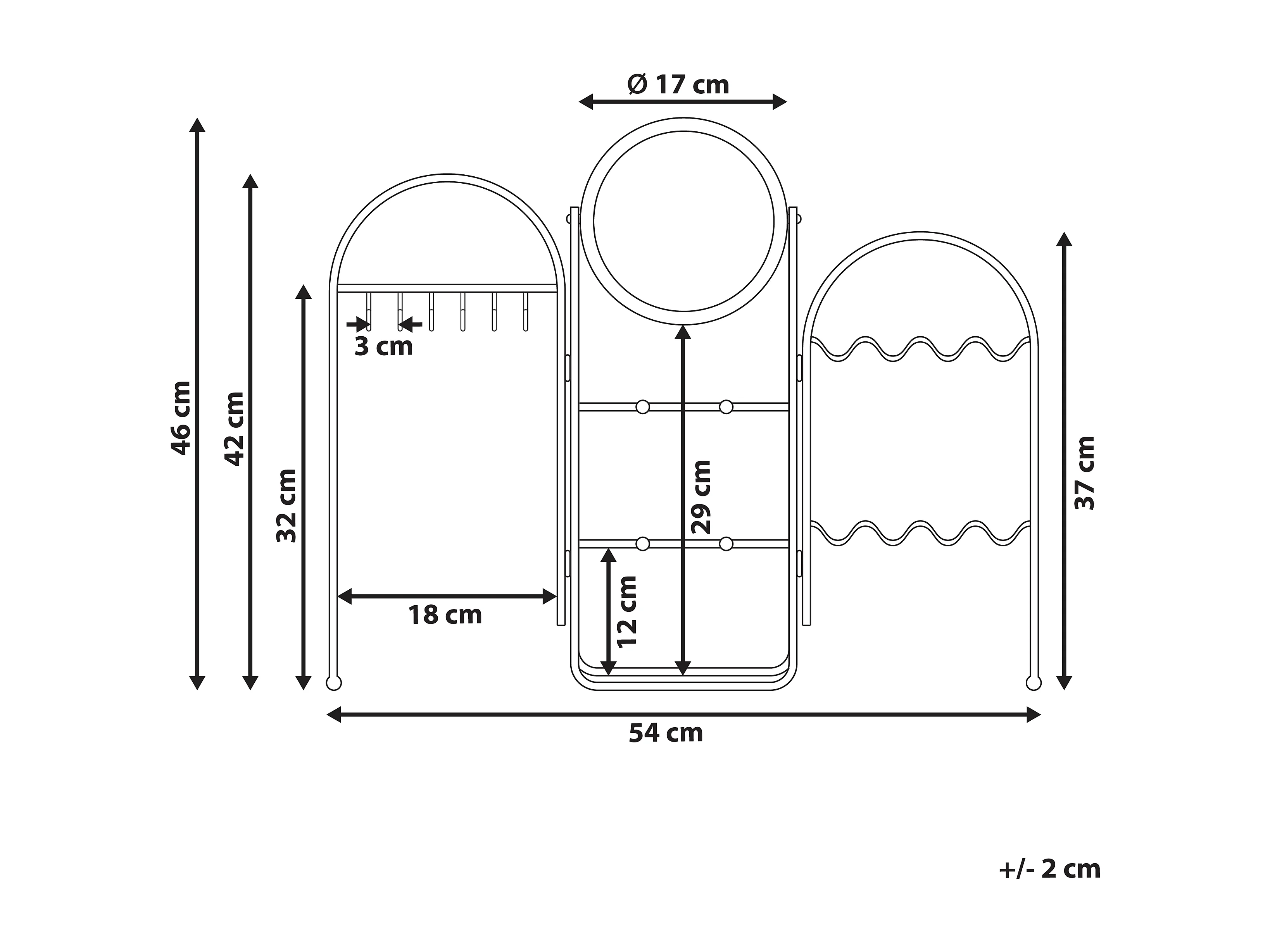 Porte Bijoux Miroir Filaire Metal 35.5x30x10cm Or