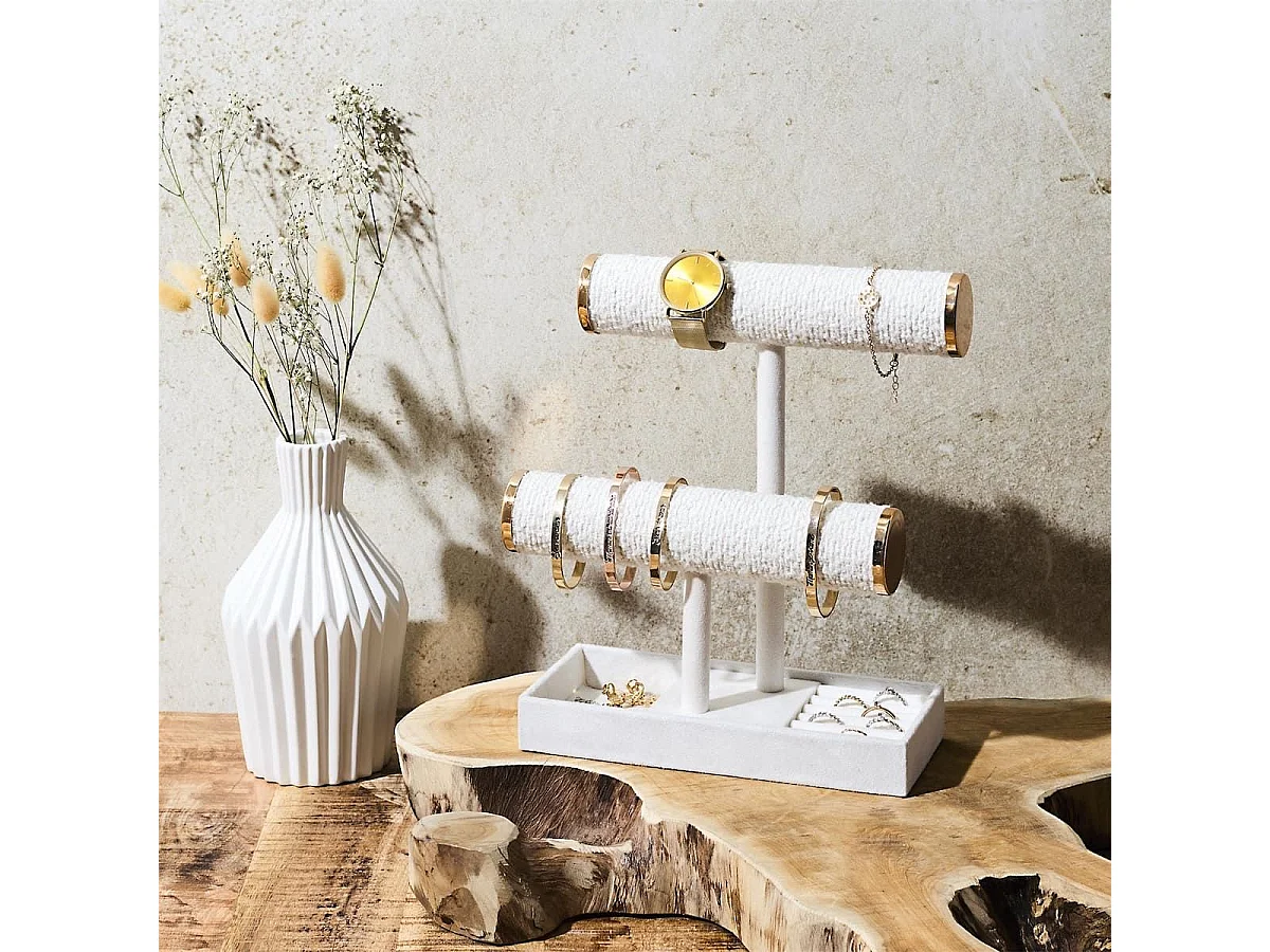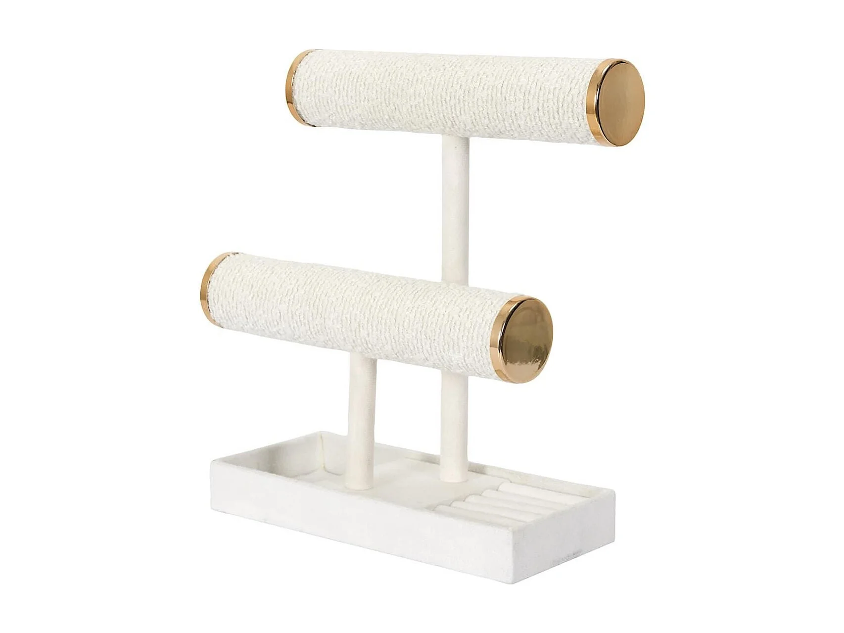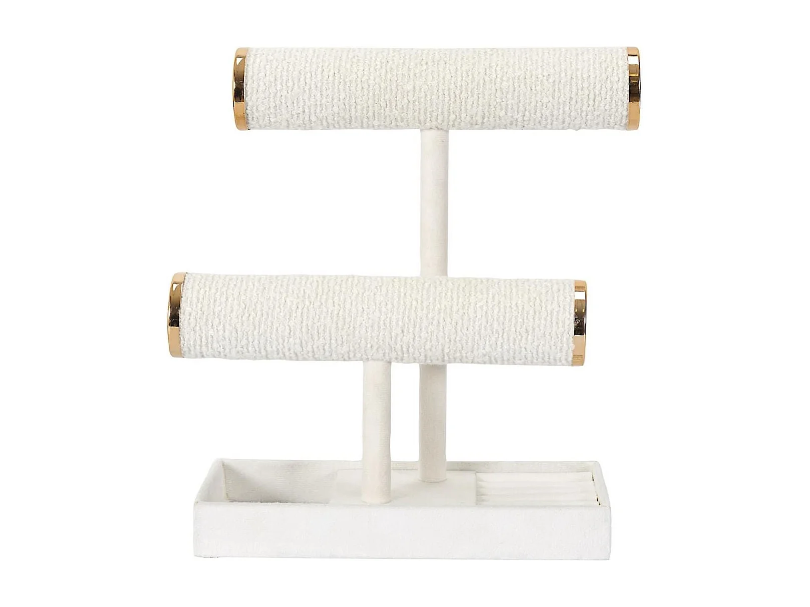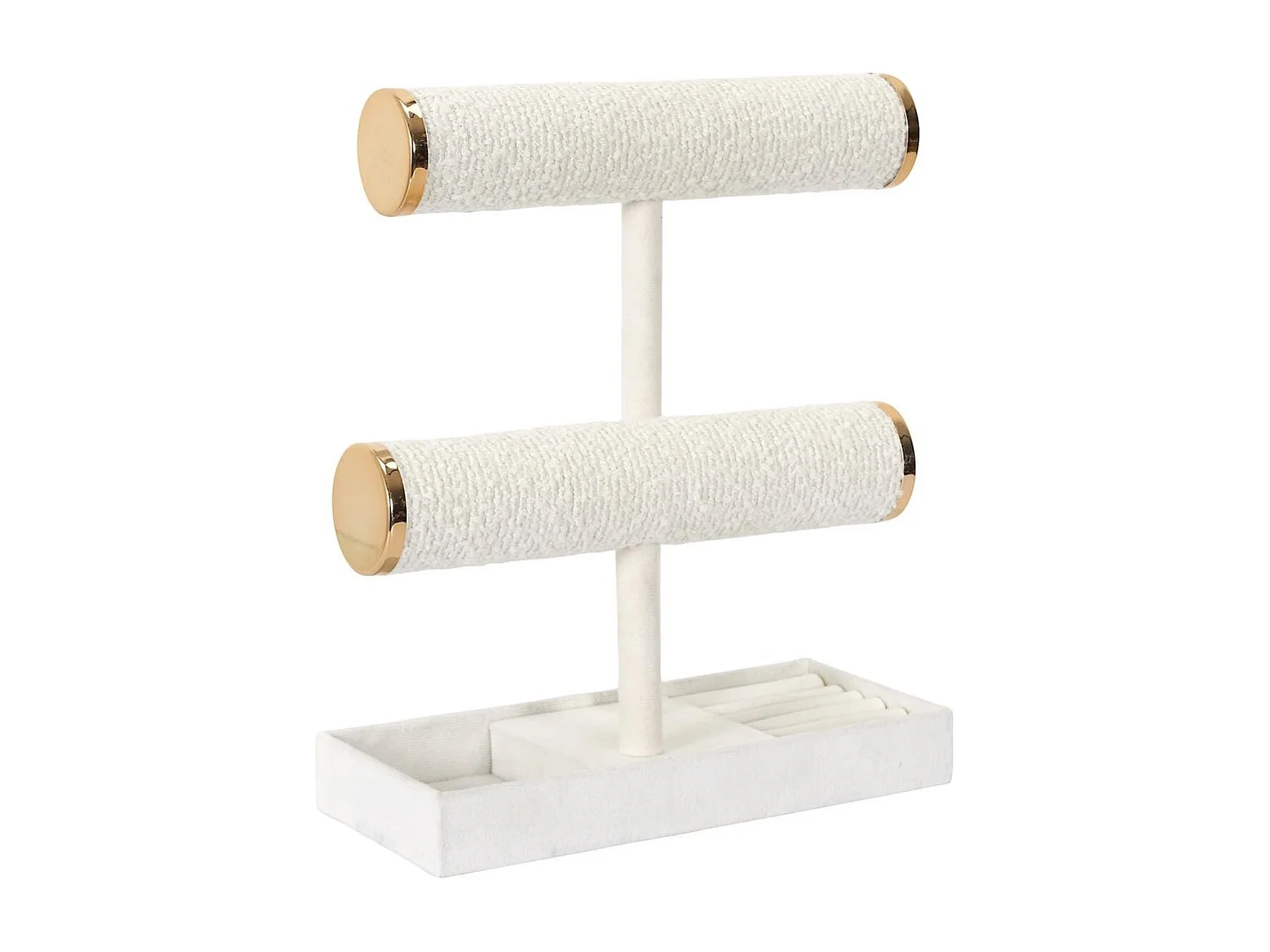 Porte-bijoux double en bouclette ivoire avec finitions dorées