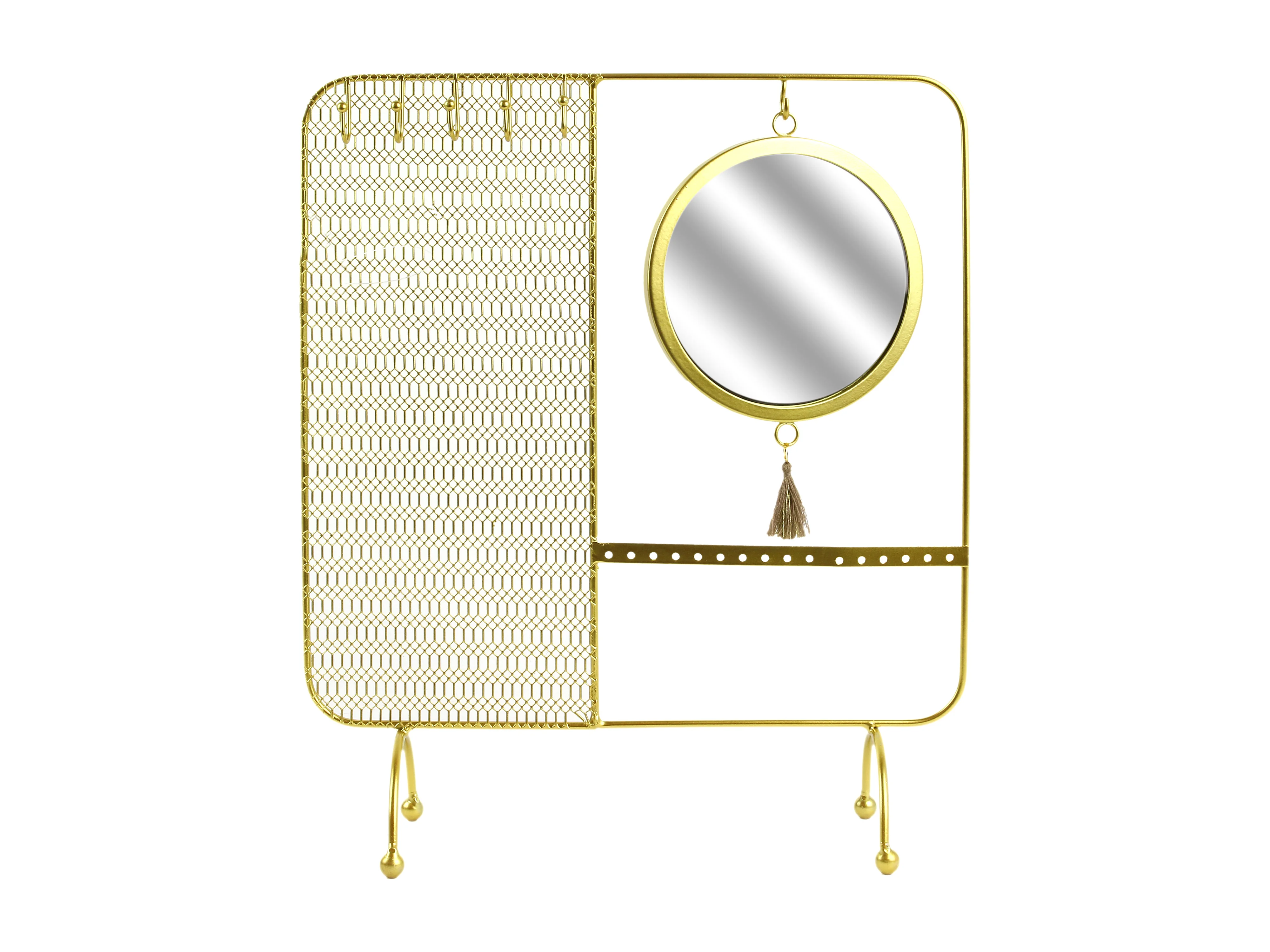 Porte Bijoux Miroir Filaire Metal 35.5x30x10cm Or