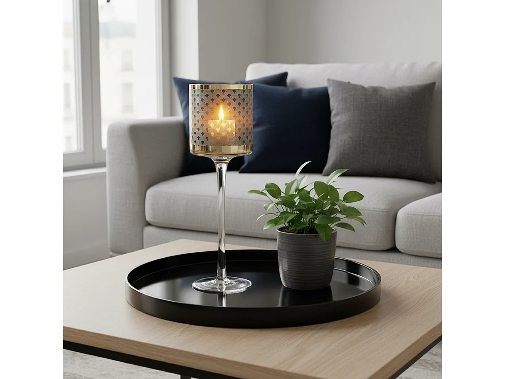 Photophore Déco en Verre "Sur Pied" 37cm Or