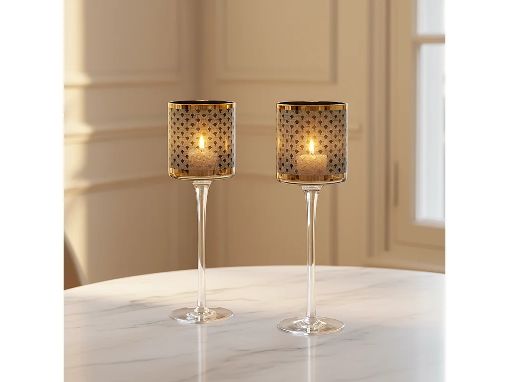 Lot de 2 bougeoirs IMARTI Verre 40 cm Doré
