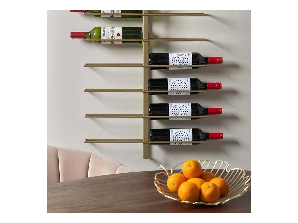 Casier à vin mural pour 9 bouteilles Doré Fer