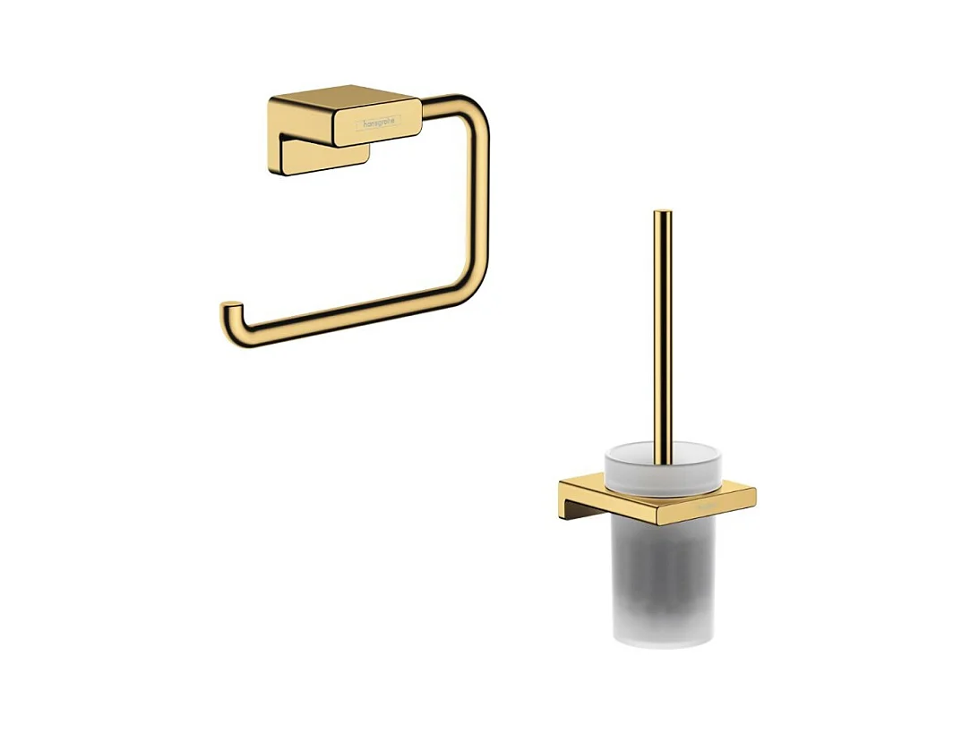 Porte-brosse WC HANSGROHE AddStoris + Porte-papier WC aspect doré poli