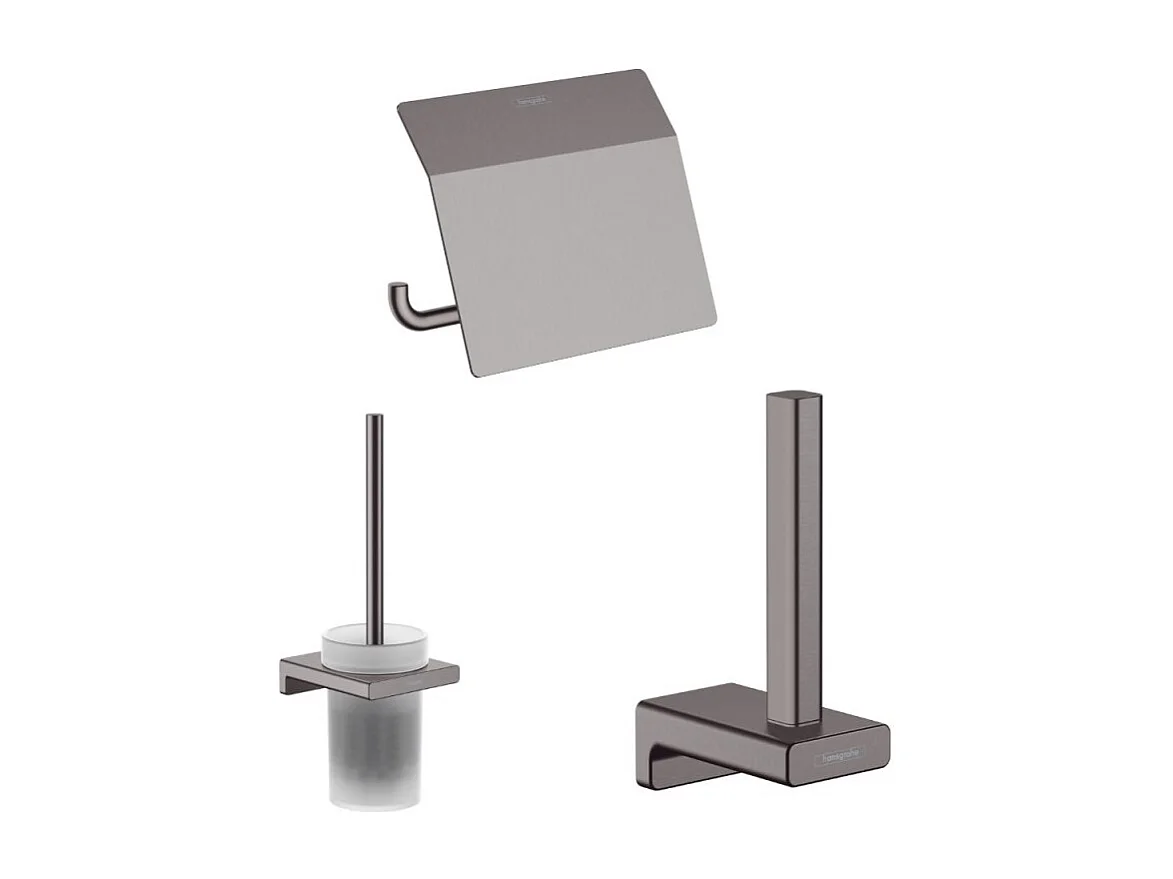 Porte-brosse WC HANSGROHE Addstoris + Porte-papier WC avec couvercle + Réserve porte-papier noir chromé brossé