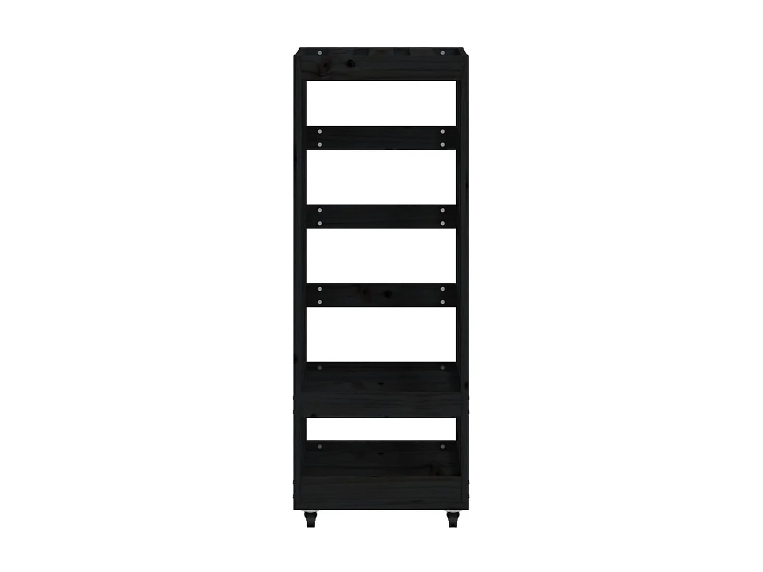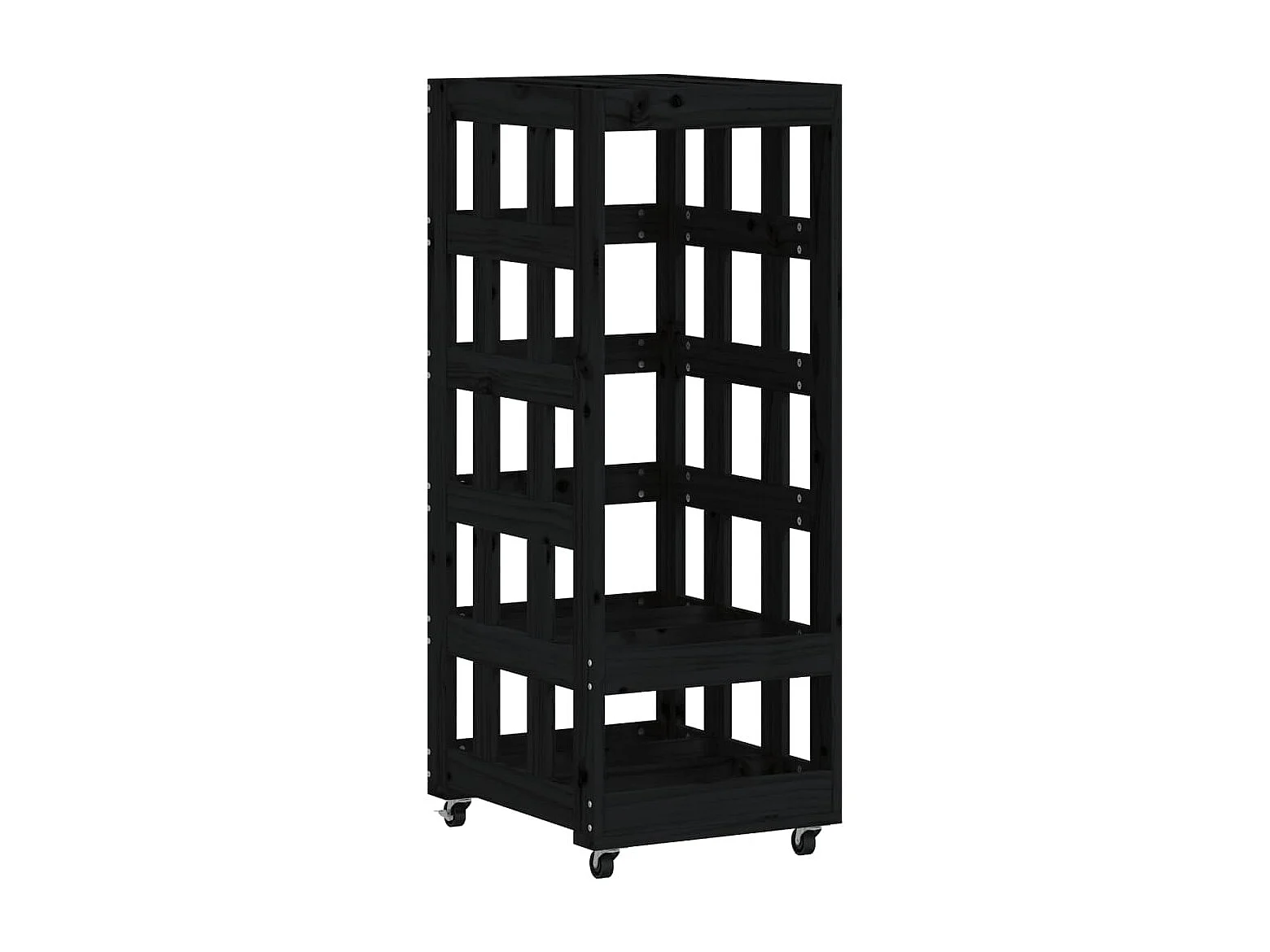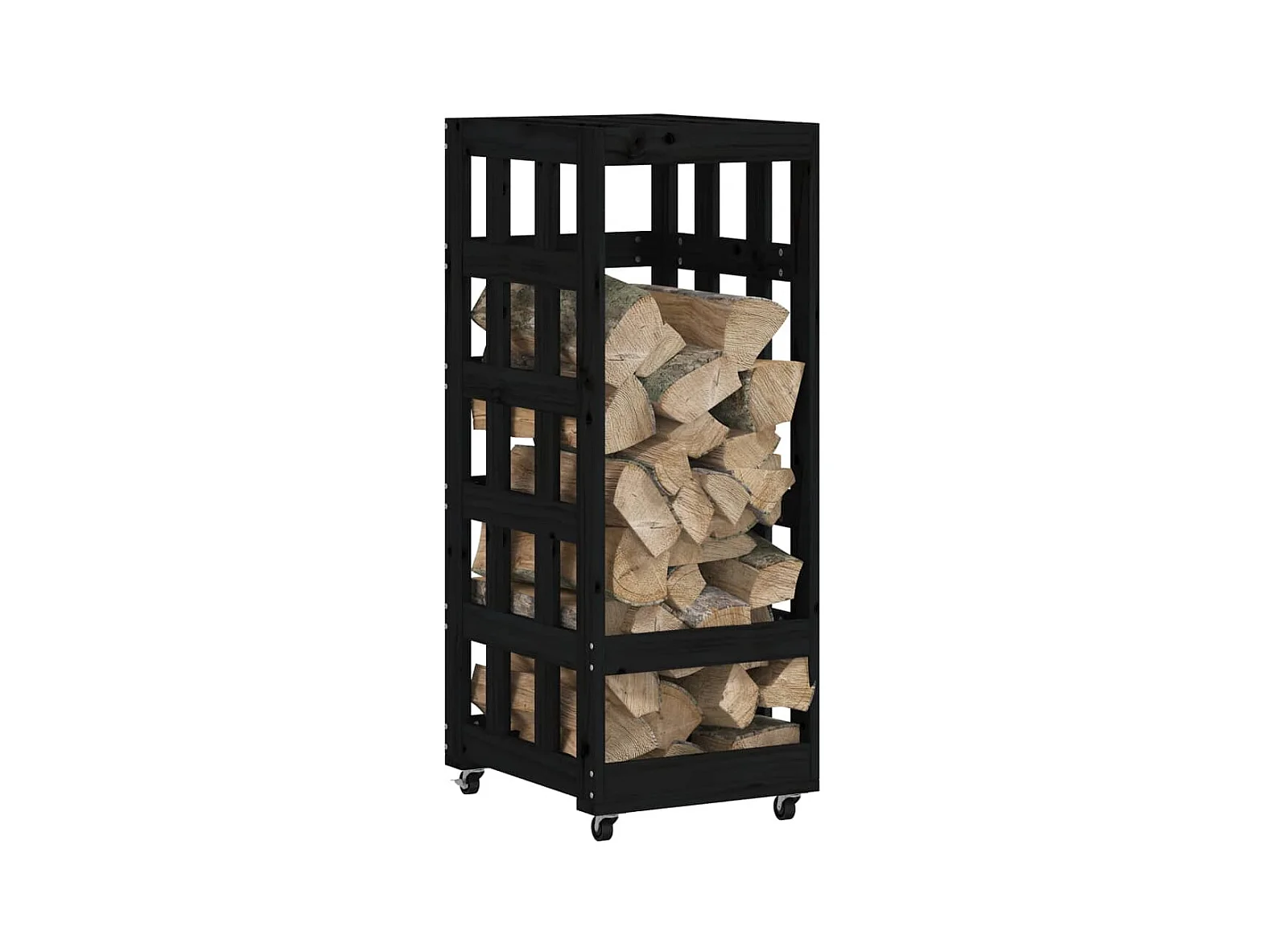 Porte-bûches avec roulettes noir 40x49x110 cm bois massif pin -ASAF55657 BonneVie Meuble