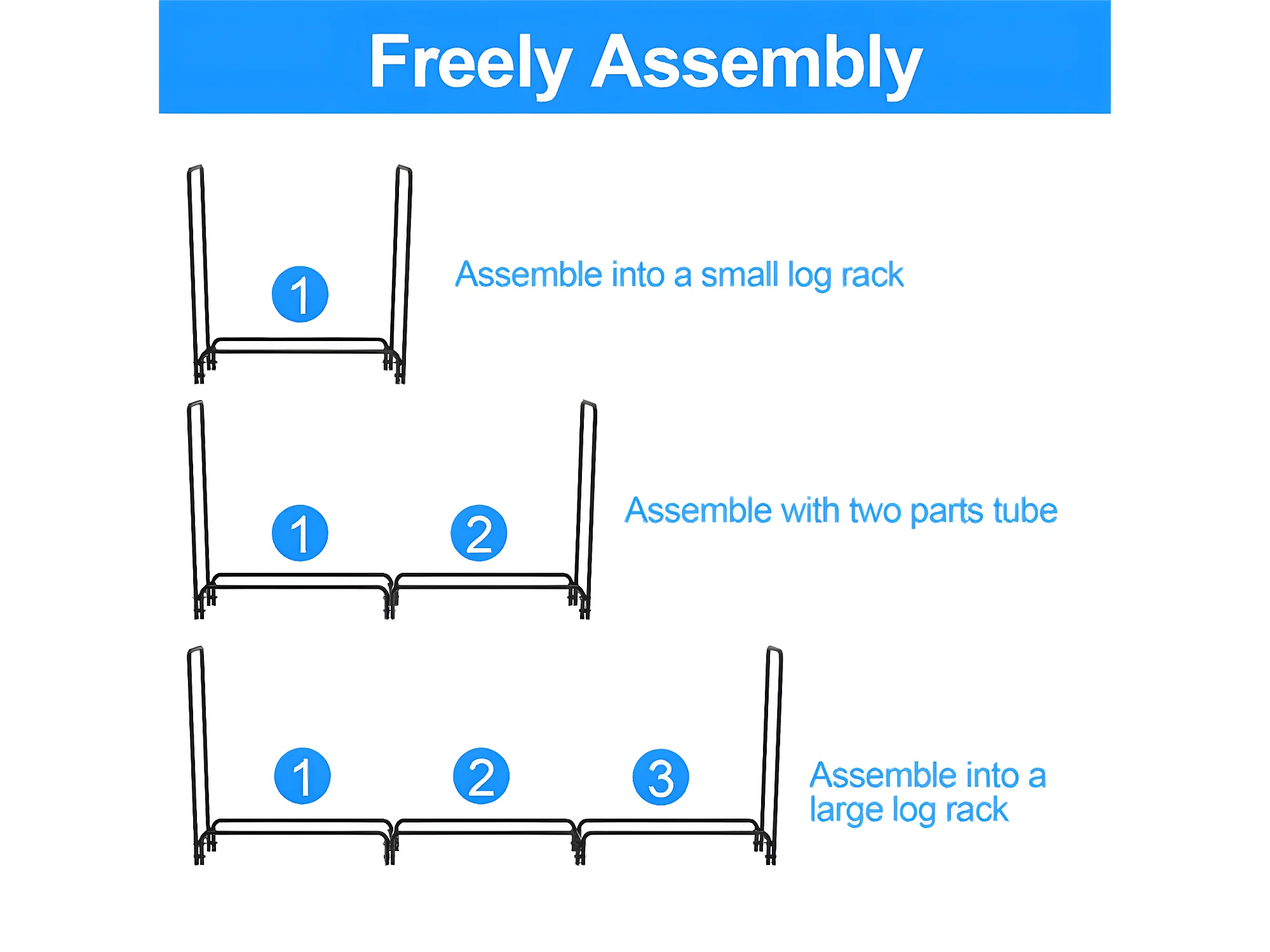 Porte bûches en métal - Noir - Rangement Serre Bûche - Étagère pour Bois de Cheminé - Stockage Bois