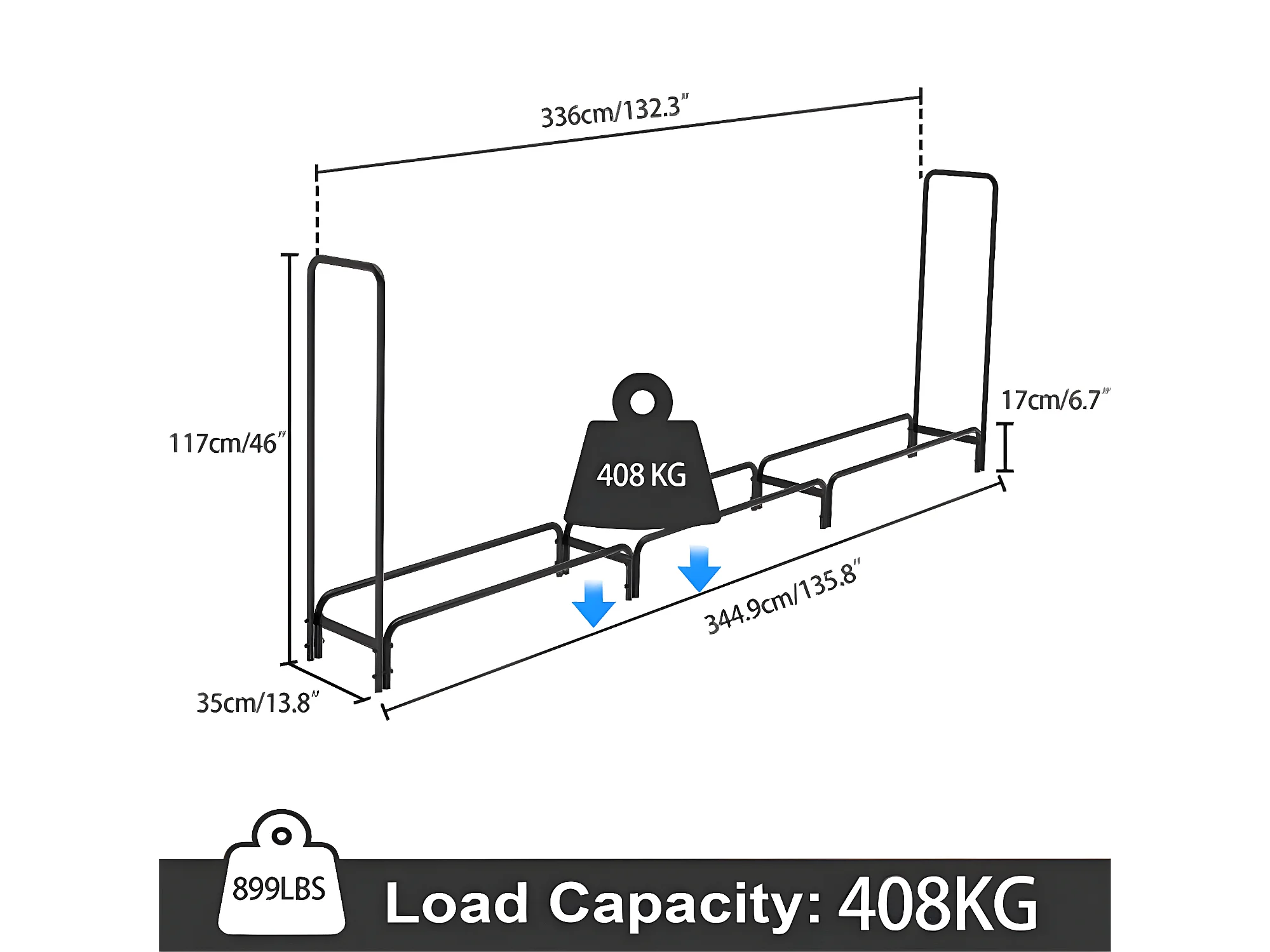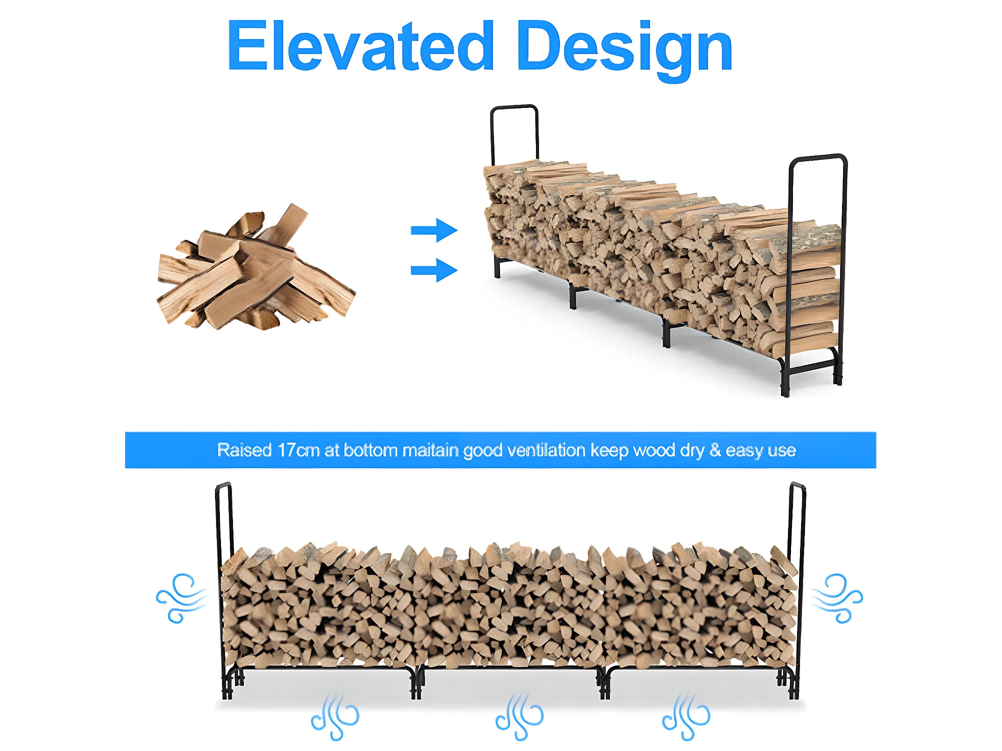Porte bûches en métal - Noir - Abri de jardin - Range bûche Charge 408kg XXL - Range bois cheminée