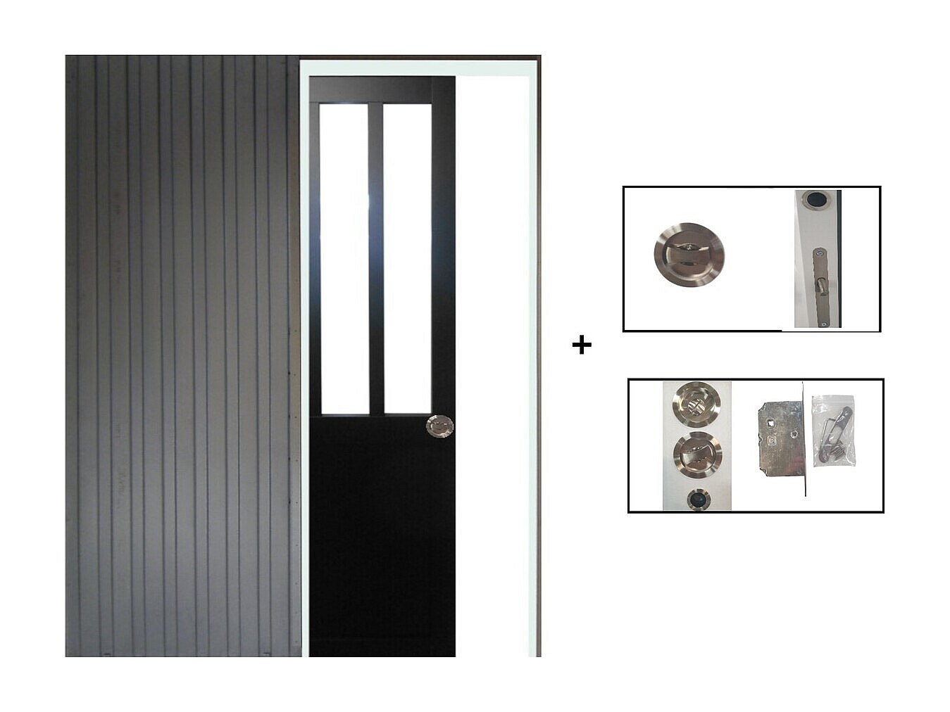 Porte Coulissant Atelier Noir H204 X L83 + Systeme A Galandage (sans Kit Finition) Gd Menuiseries