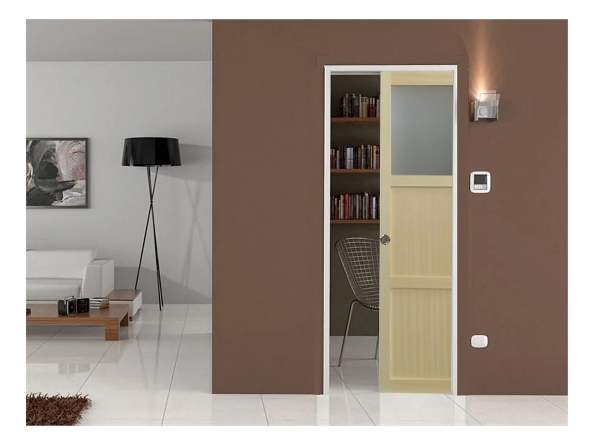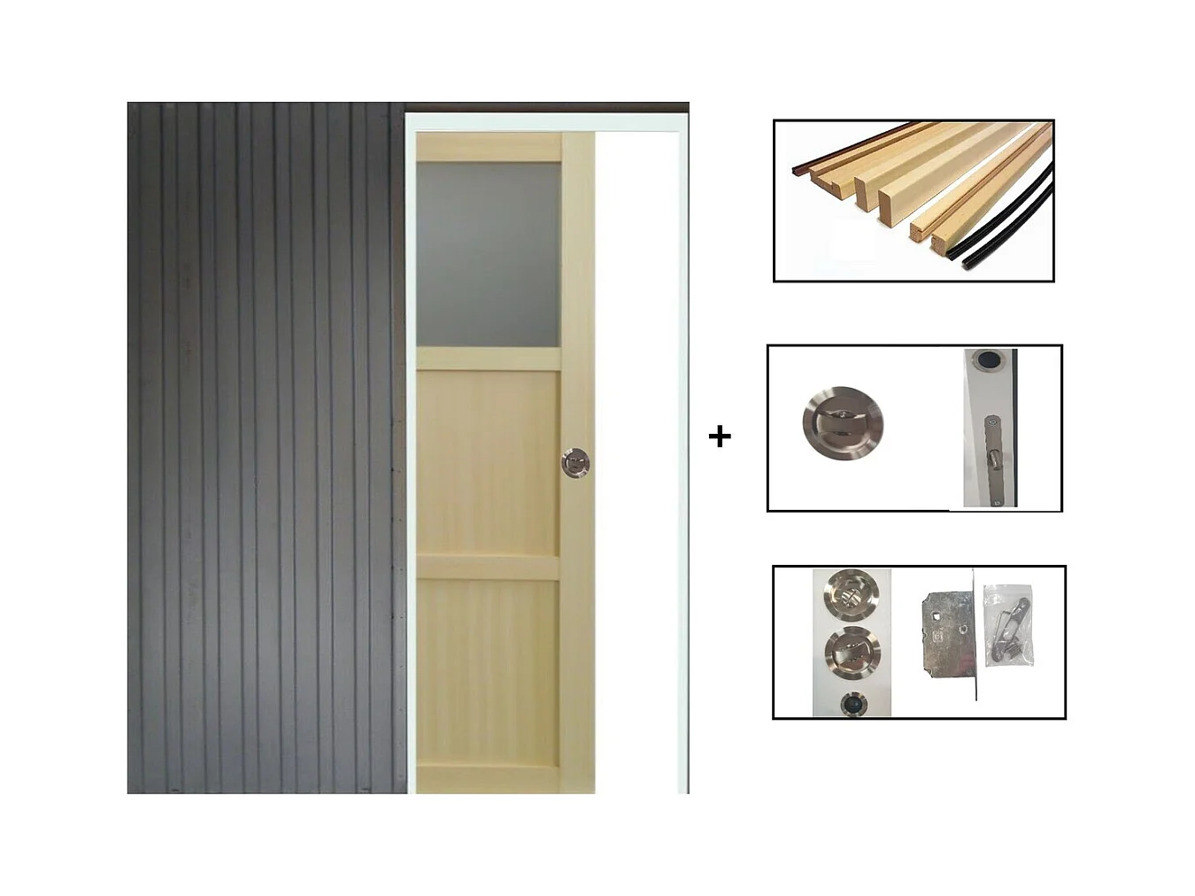 Porte Coulissante Ayous 2 Panneaux + 1 Vitrage H204 X L73 + Systeme A Galandage Et Kit Finition Inclus Gd Menuiseries