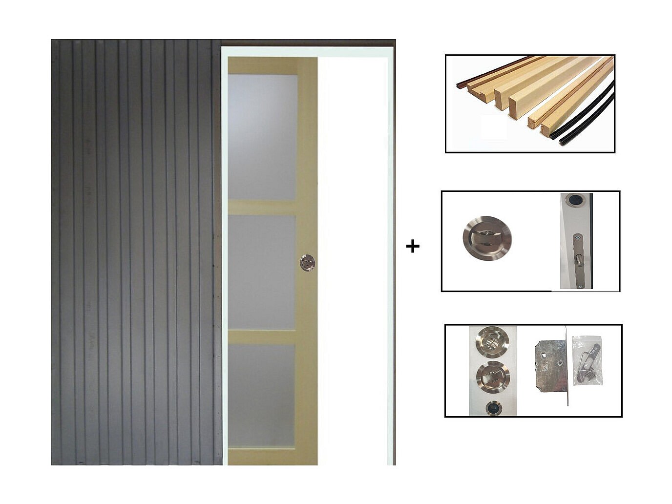 Porte Coulissante Bois Ayous Vitree H204 X L83 + Systeme A Galandage Et Kit Finition Inclus Gd Menuiseries