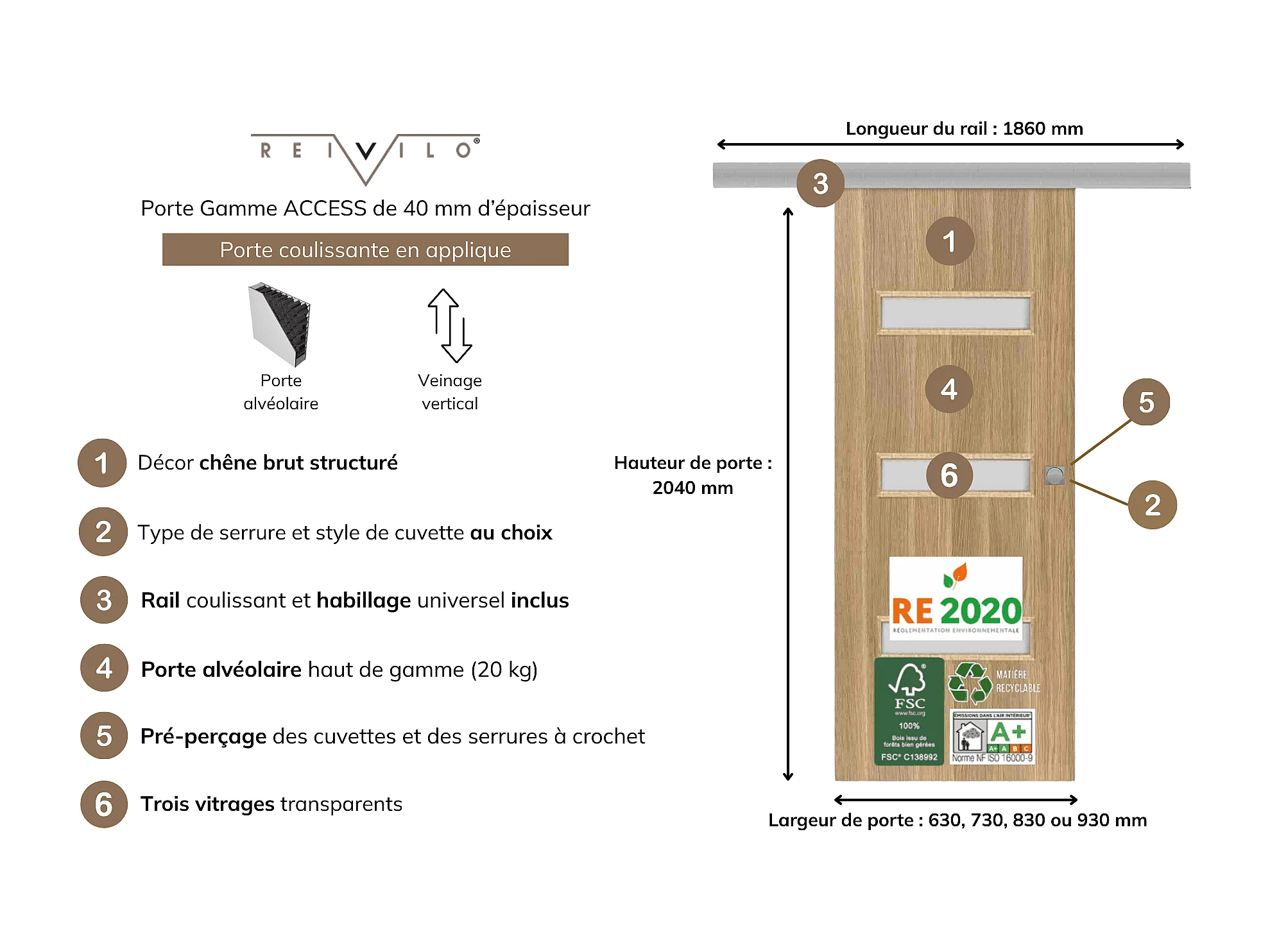 Porte coulissante applique April 73 cm avec crochet carré condamnation noir