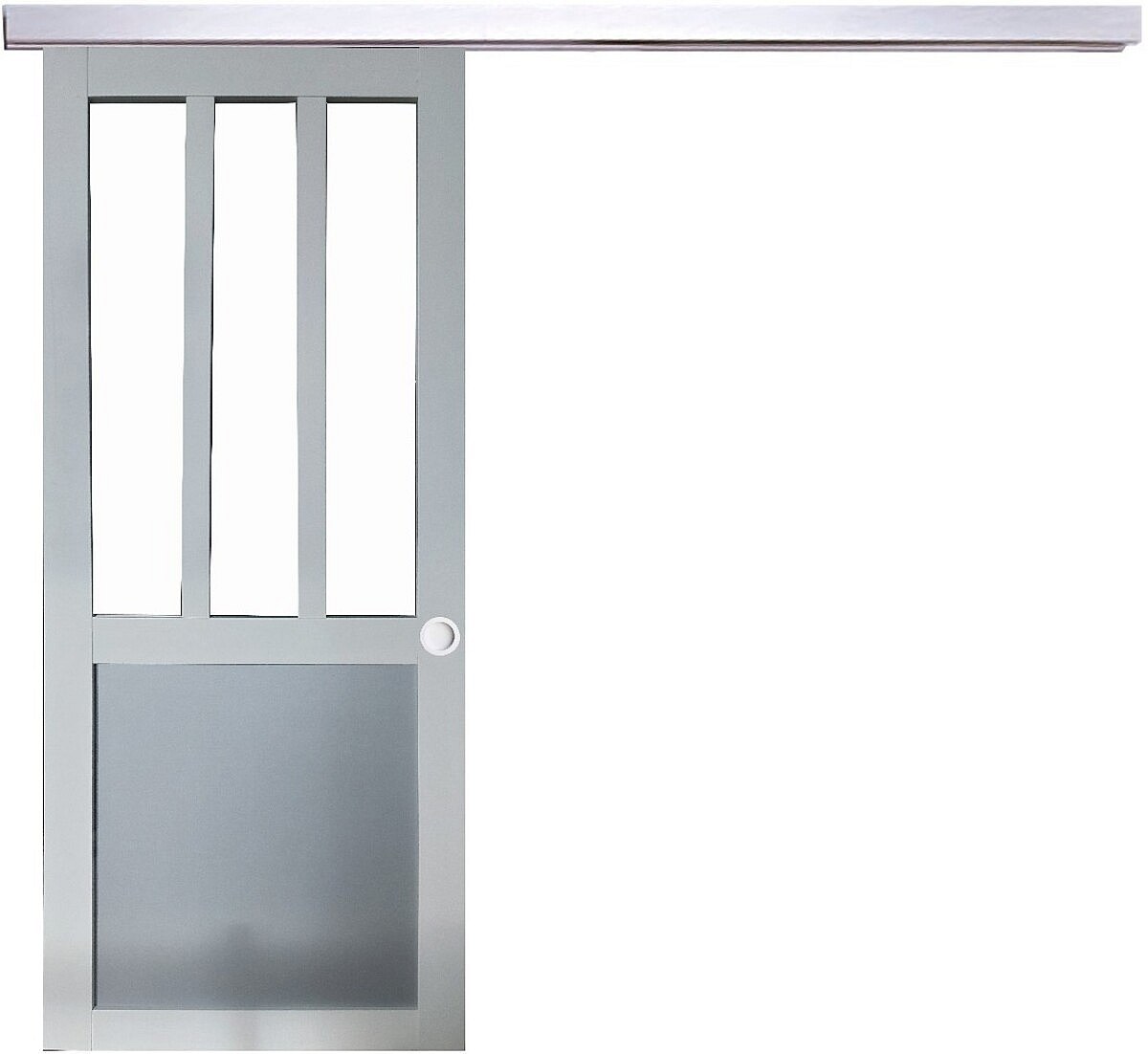 Porte Coulissante Atelier Blanc Et Gris Ral7035 Vitree H204 X L73 + Rail Alu Et Coquilles Blanc Gd Menuiseries