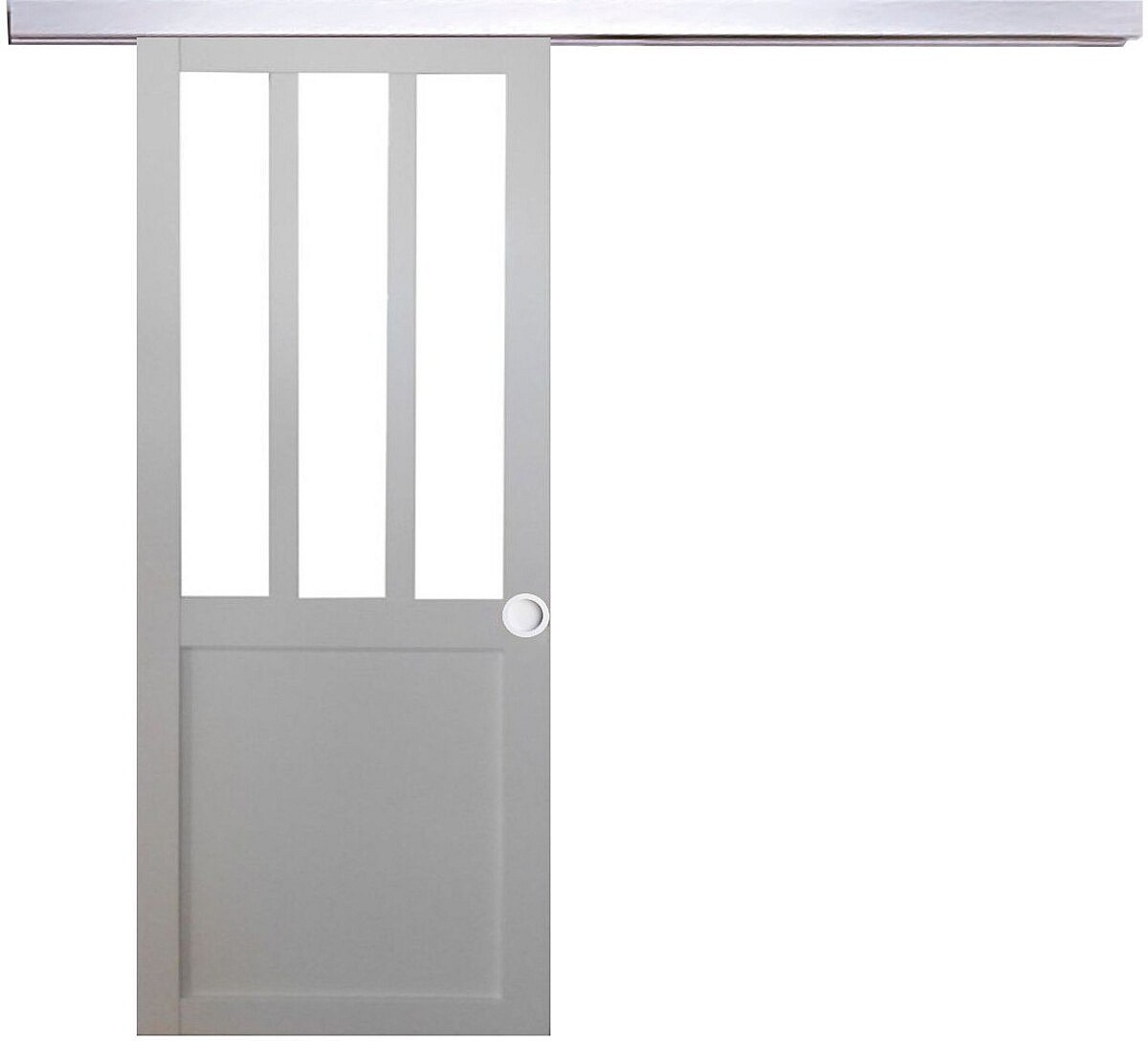 Porte Coulissante Atelier Blanc H204 X L73 + Rail Alu Et Coquilles Blanc Gd Menuiseries