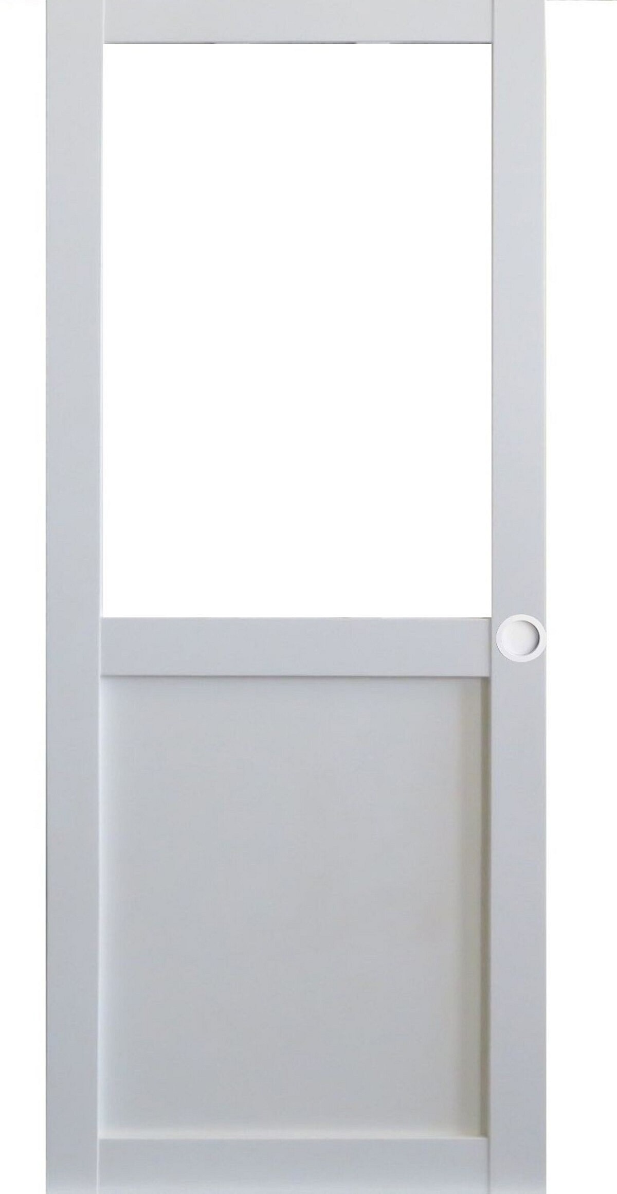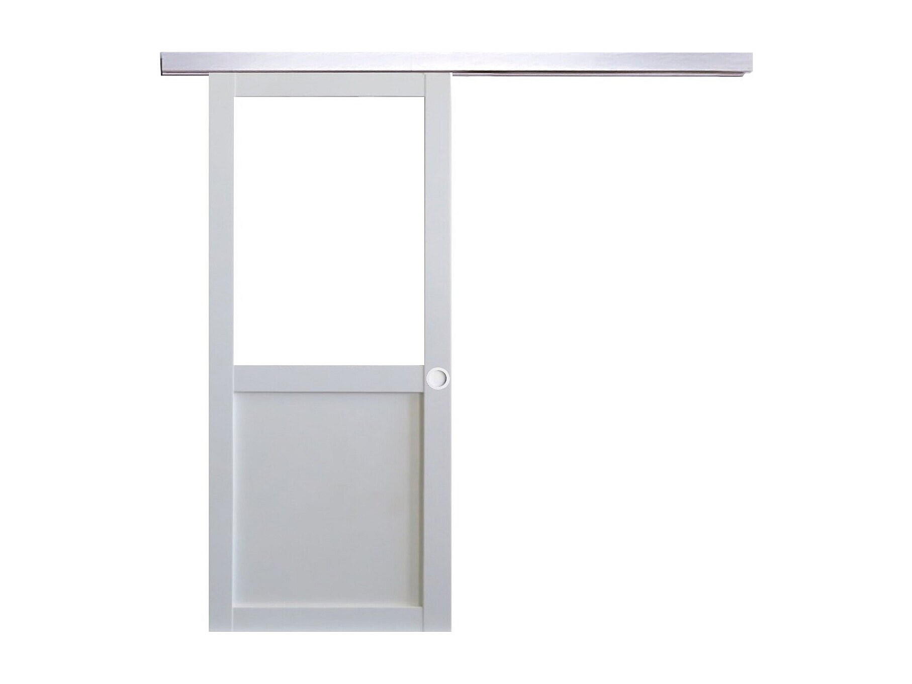 Porte Coulissante Atelier Blanc H204 X L93 Sans Meneau + Rail Alu Et Coquilles Blanc Gd Menuiseries