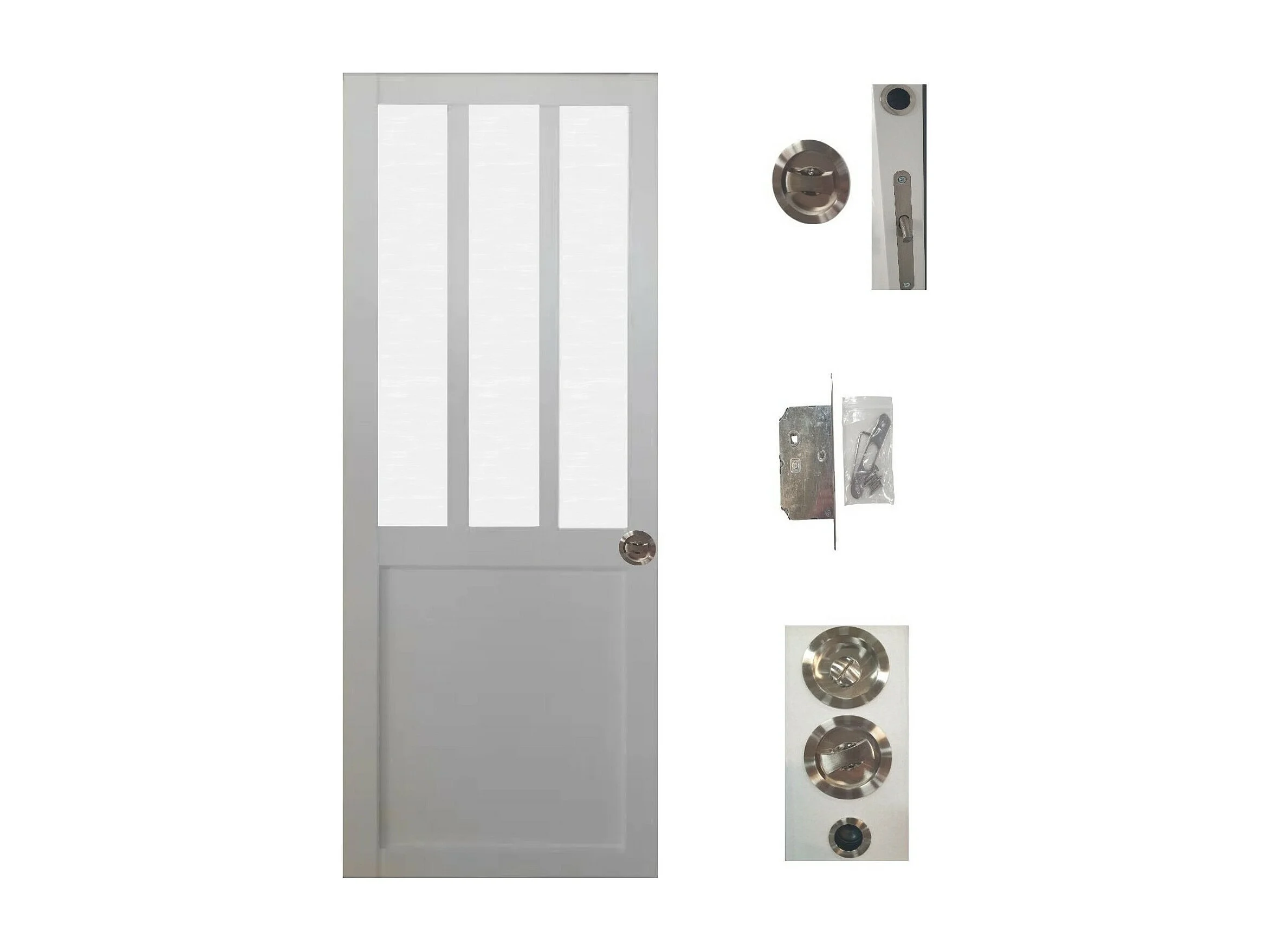 Porte Coulissante Atelier Blanc Vitre Depoli H204 X L73 + Serrure A Condamnation Gd Menuiseries