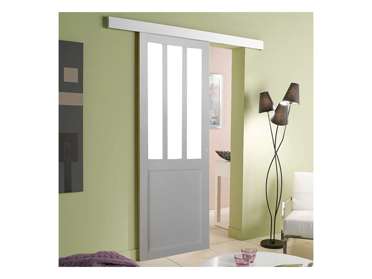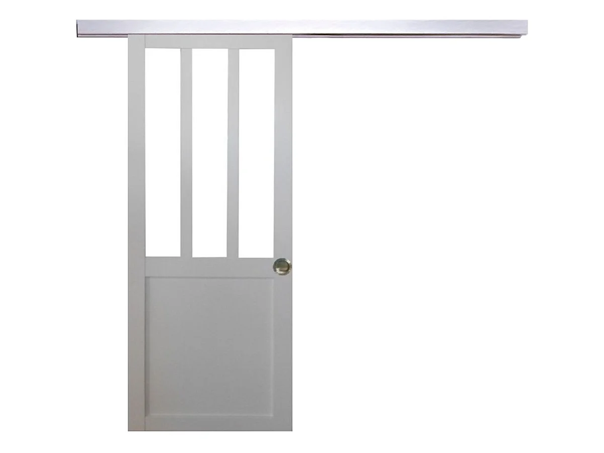 Porte Coulissante Atelier Blanc H204 X L93 + Rail Alu Et Coquilles Gd Menuiseries