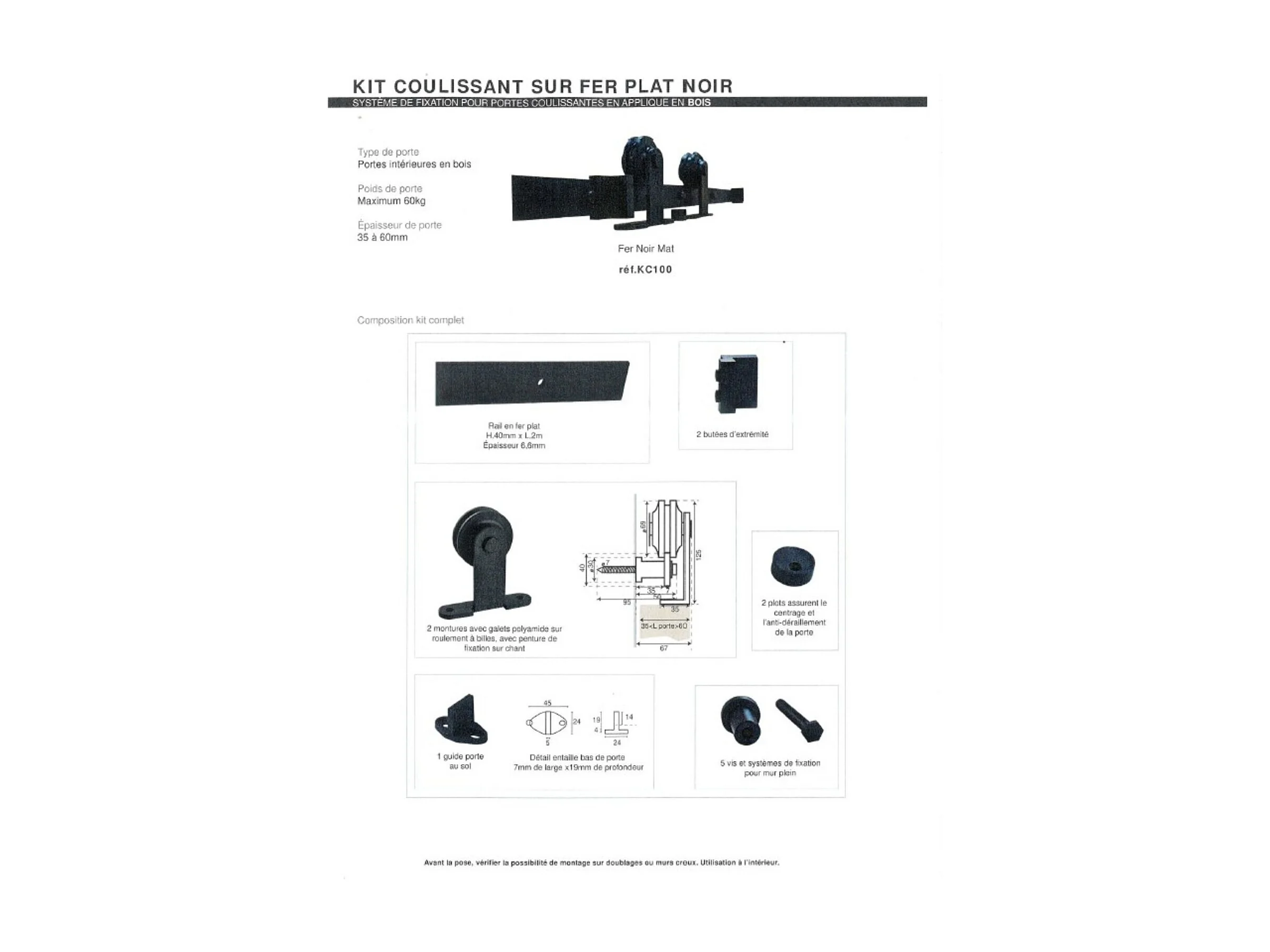 Porte Coulissante Atelier Blanc H204 X L83 Cm, Rail Roulettes, Coquilles Gd Menuiseries
