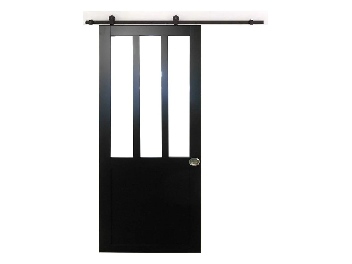 Porte Coulissante Atelier Noir H204 X L83 + Rail A Roulettes Et Coquilles Gd Menuiseries