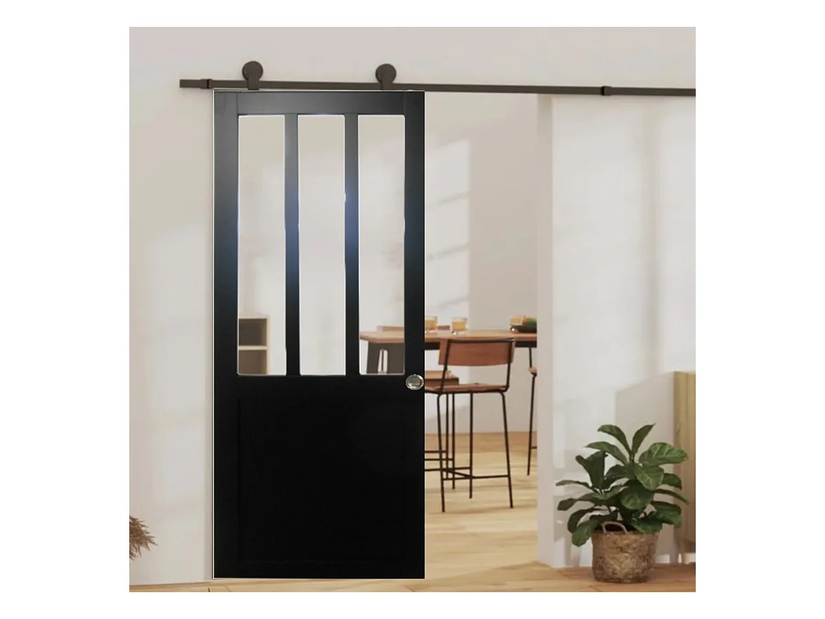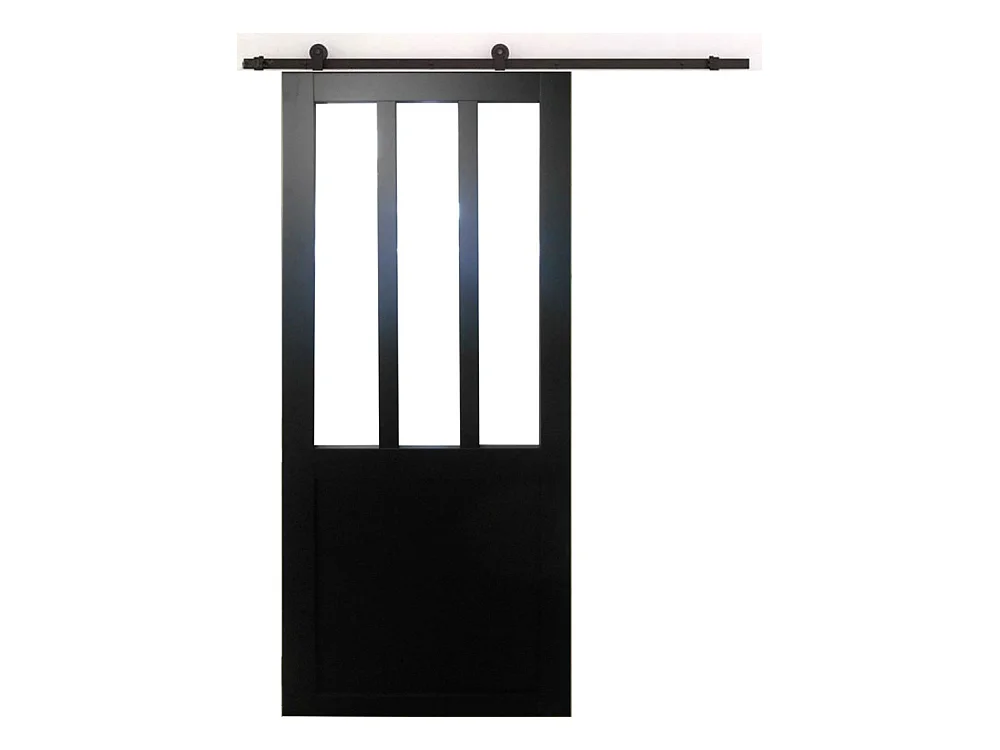 Porte Coulissante Atelier Noir H204 X L93 + Rail A Roulettes Et Coquilles Gd Menuiseries