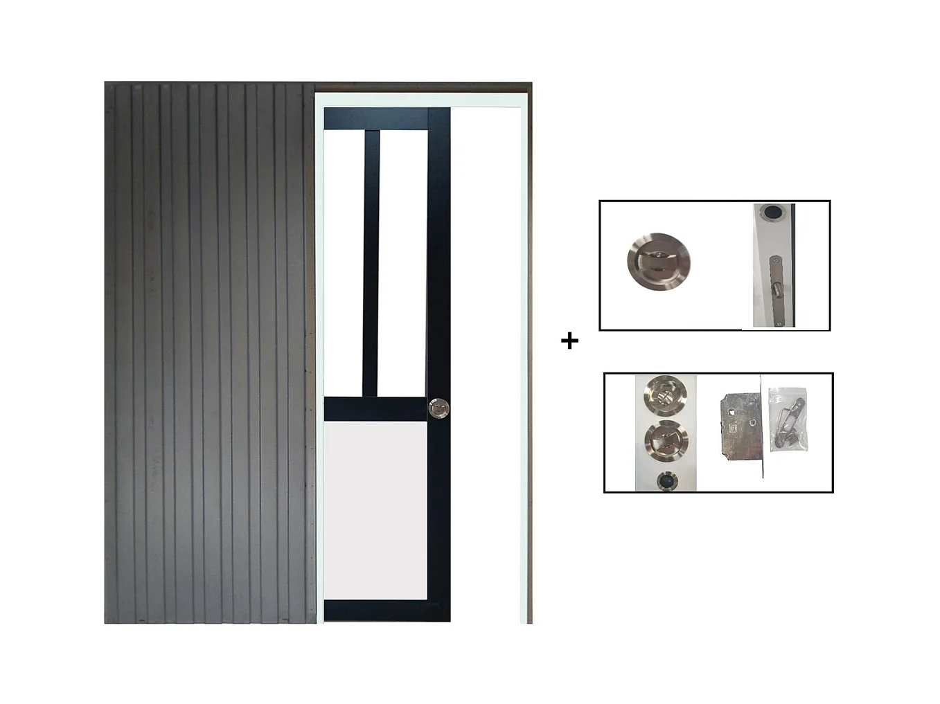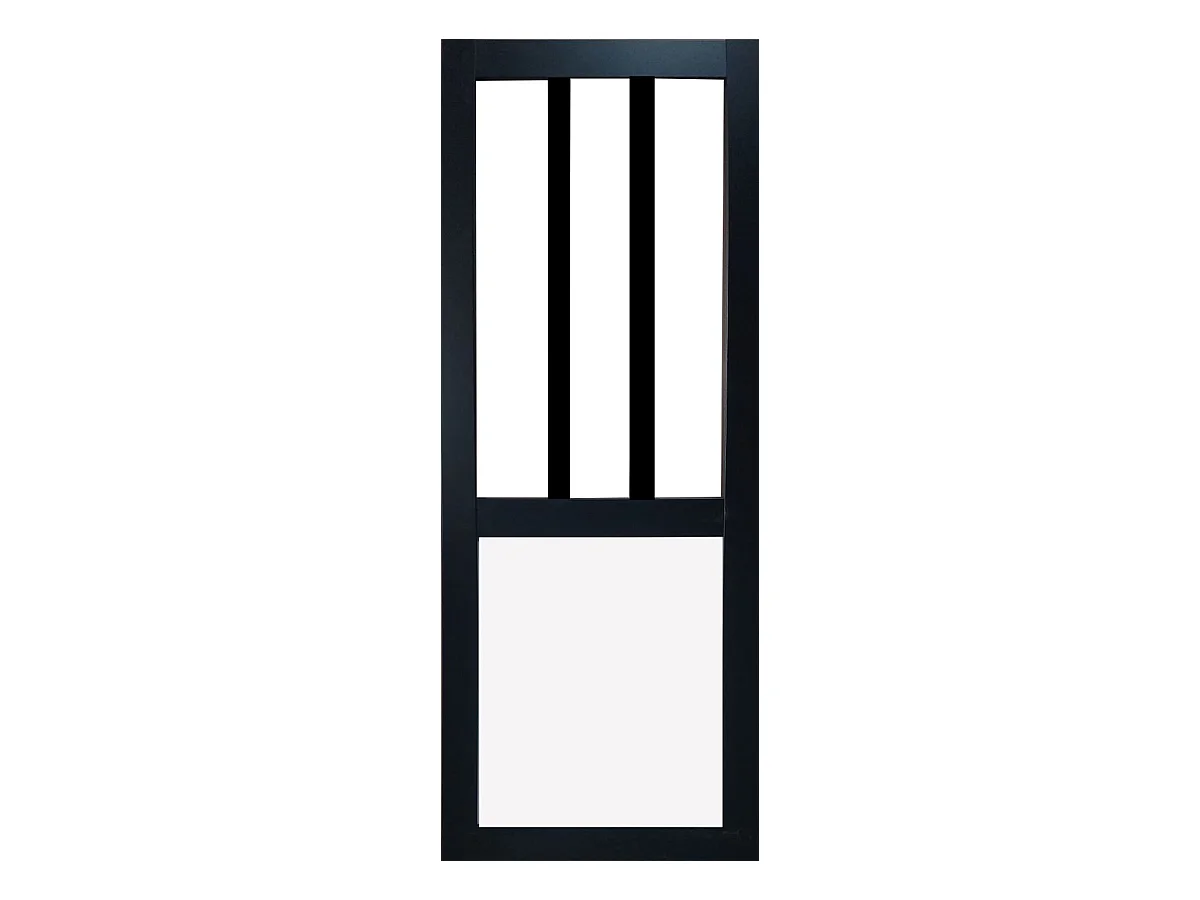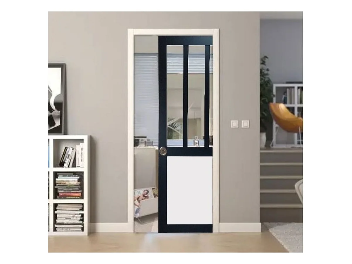 Porte Coulissante Atelier Noir Et Panneau Blanc Vitree H204 X L73 + Systeme A Galandage (sans Kit Finition) Gd Menuiseries