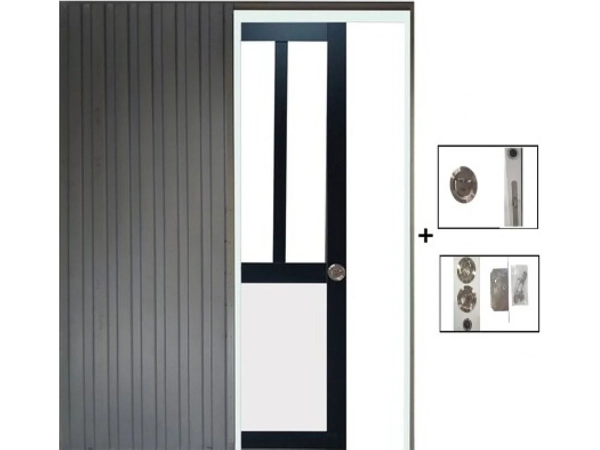 Porte Coulissante Atelier Noir Et Panneau Blanc Vitrée H204 X L73, Galandage Gd Menuiseries