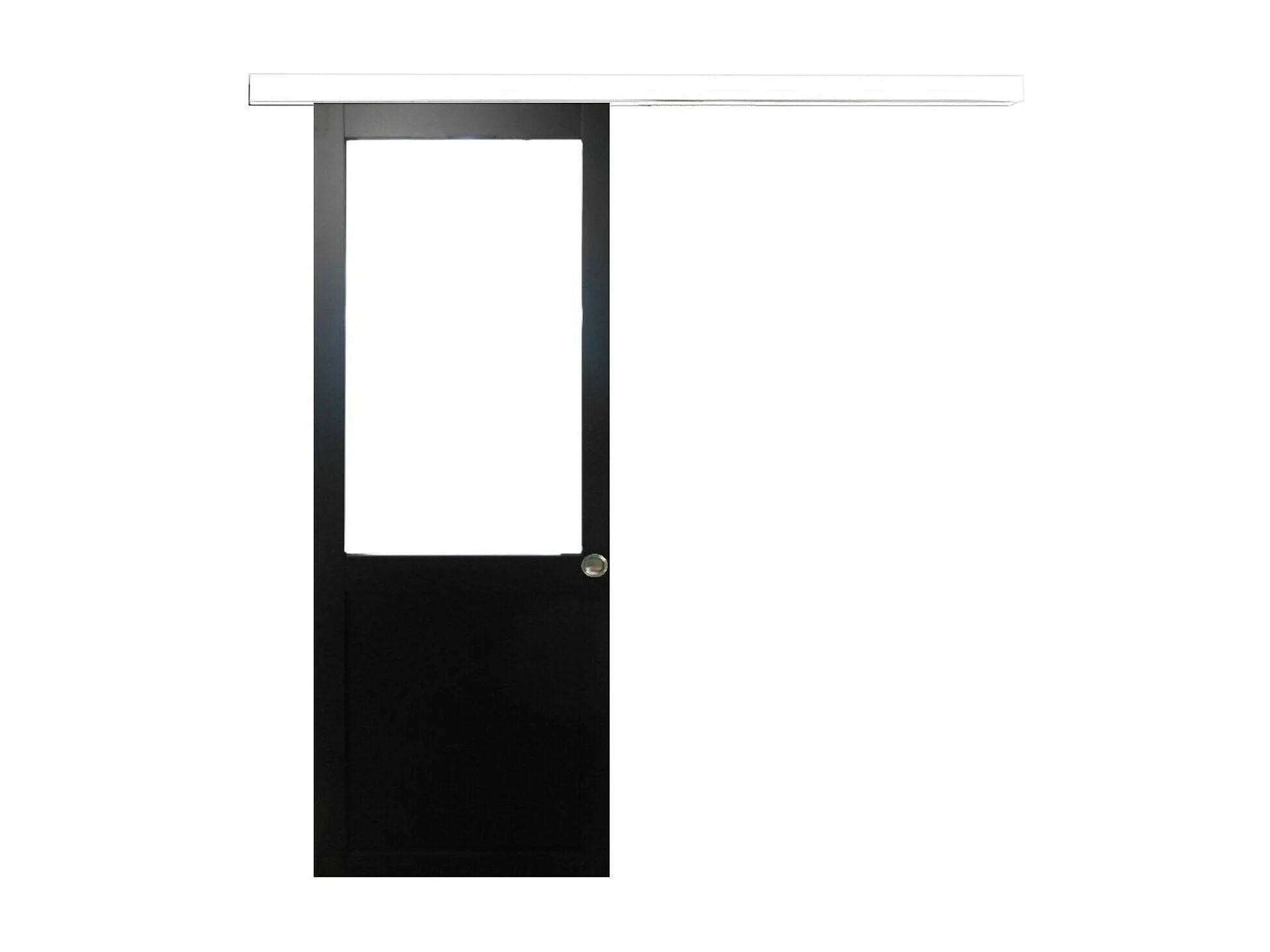 Porte Coulissante Atelier Noir H204 X L93 Sans Meneau + Rail Alu Bandeau Blanc Et Coquilles Gd Menuiseries