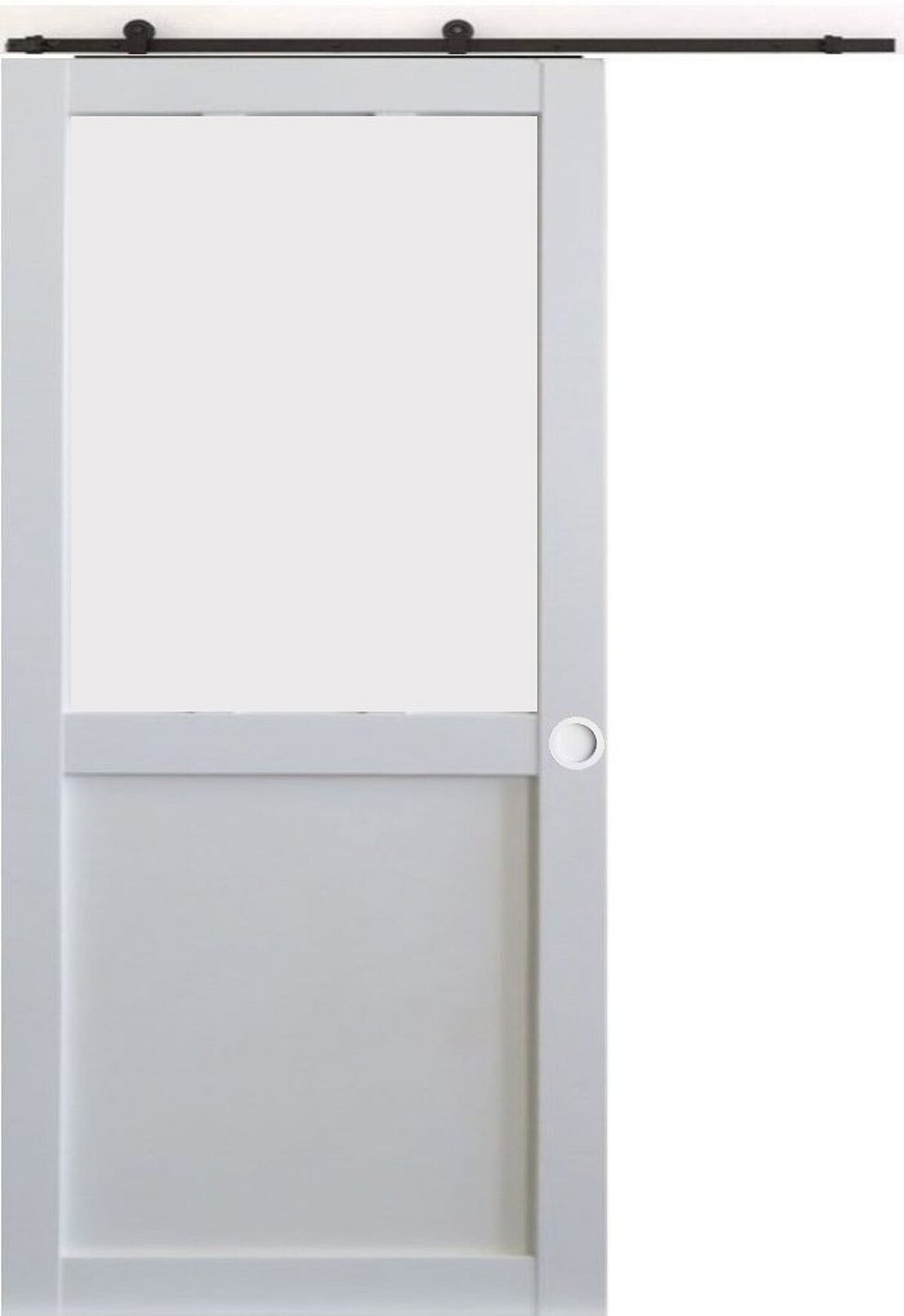 Porte Coulissante Athena Blanc H204 X L73 + Rail A Roulettes Et Coquilles Blanc Gd Menuiseries